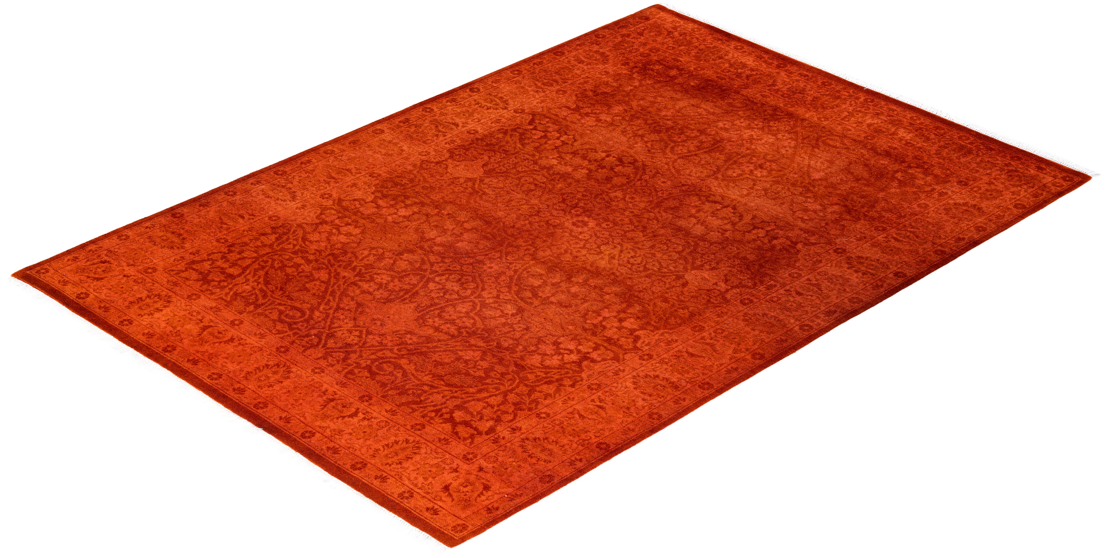 Fine Vibrance, One-of-a-Kind Hand-Knotted Area Rug - Orange, 4' 2" x 6' 0"