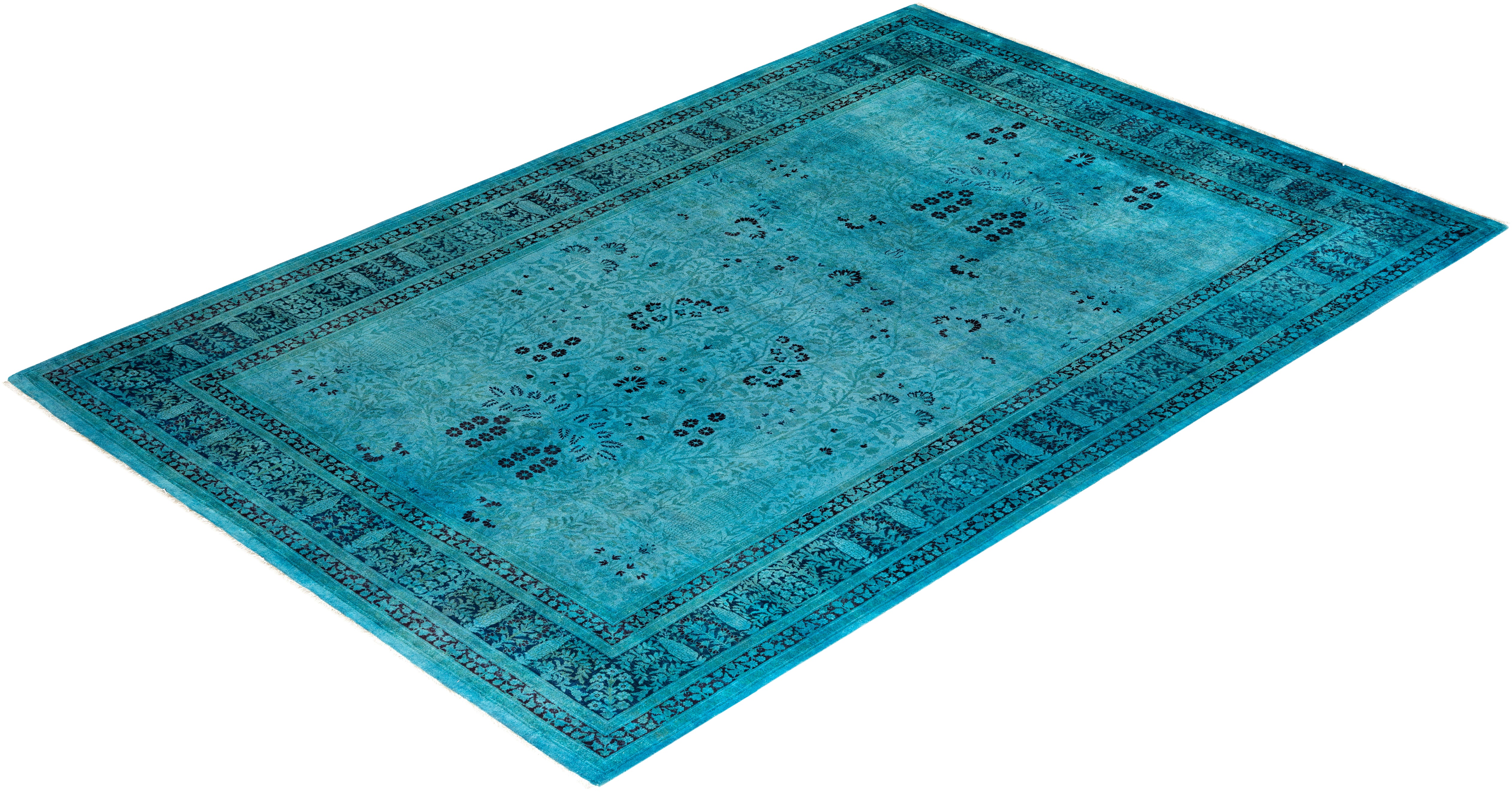 Contemporary Hand-Knotted Overdyed Blue Area Rug 6' 1" x 9' 2"