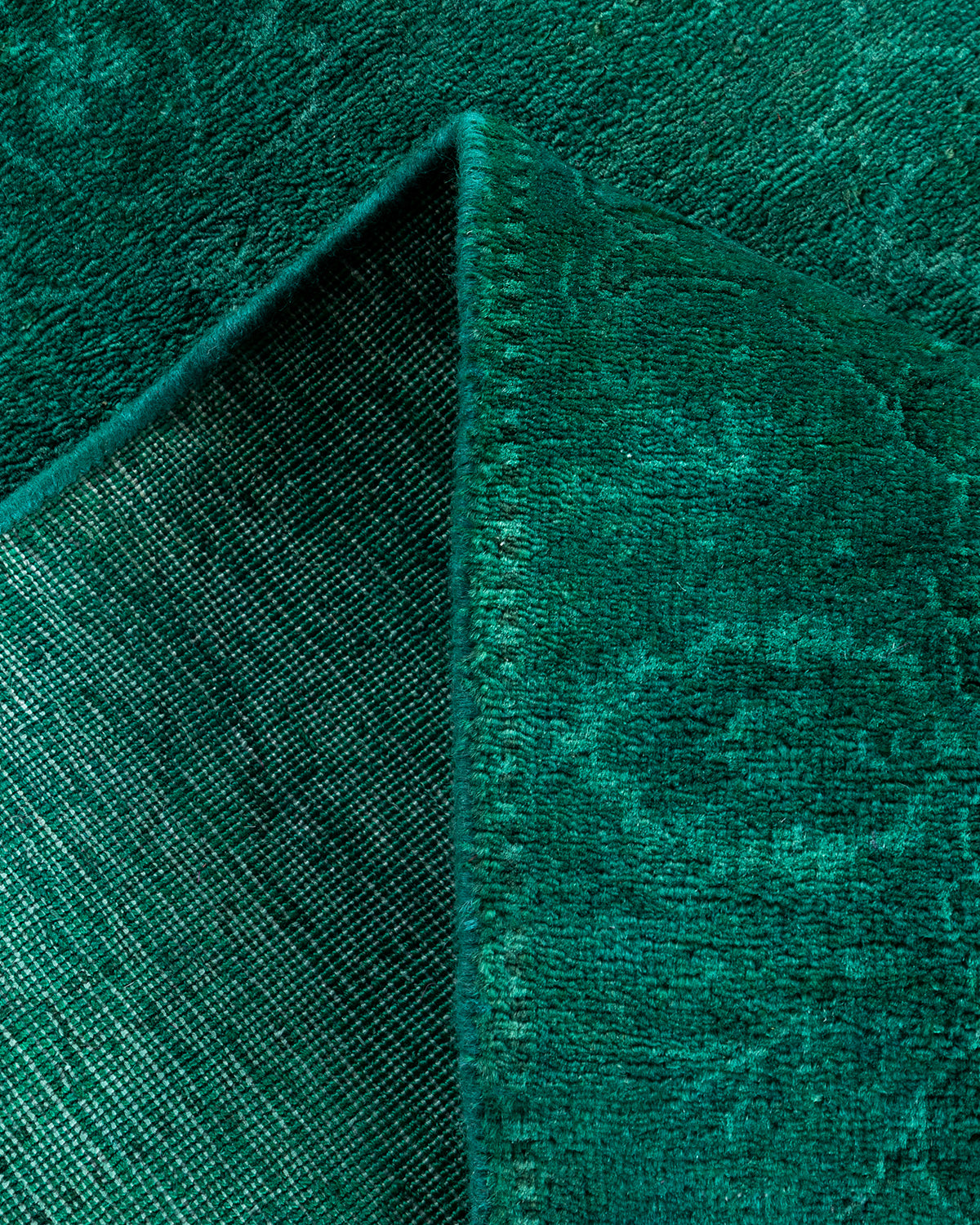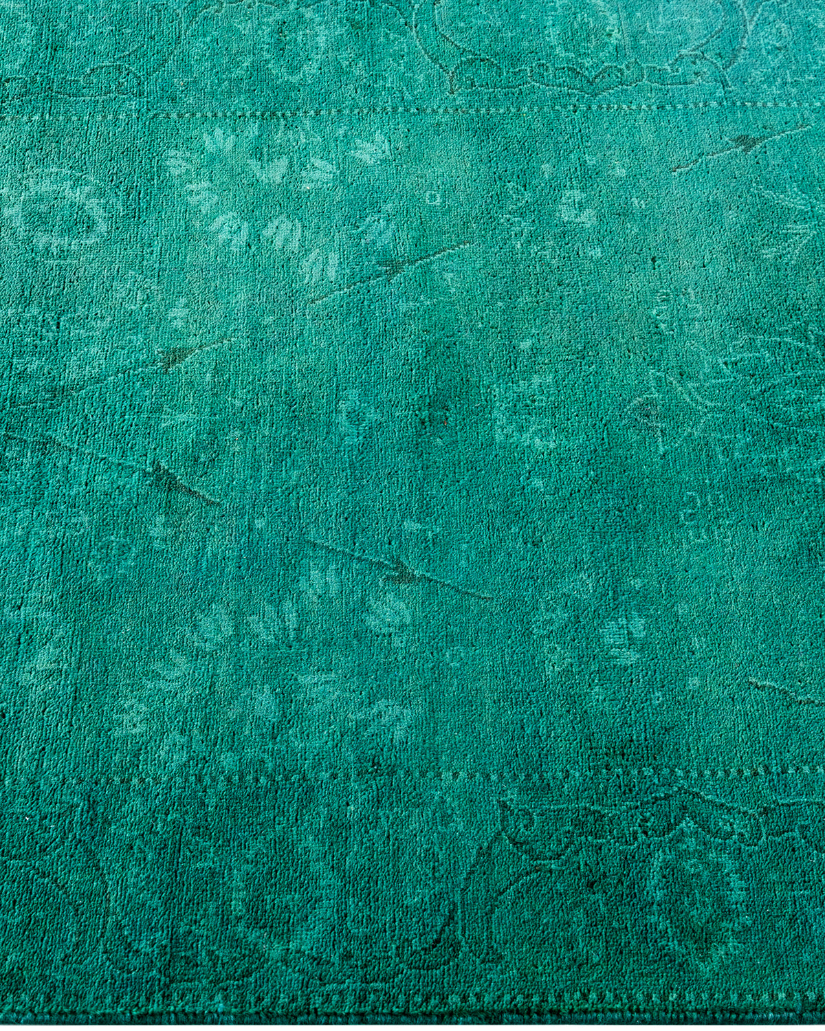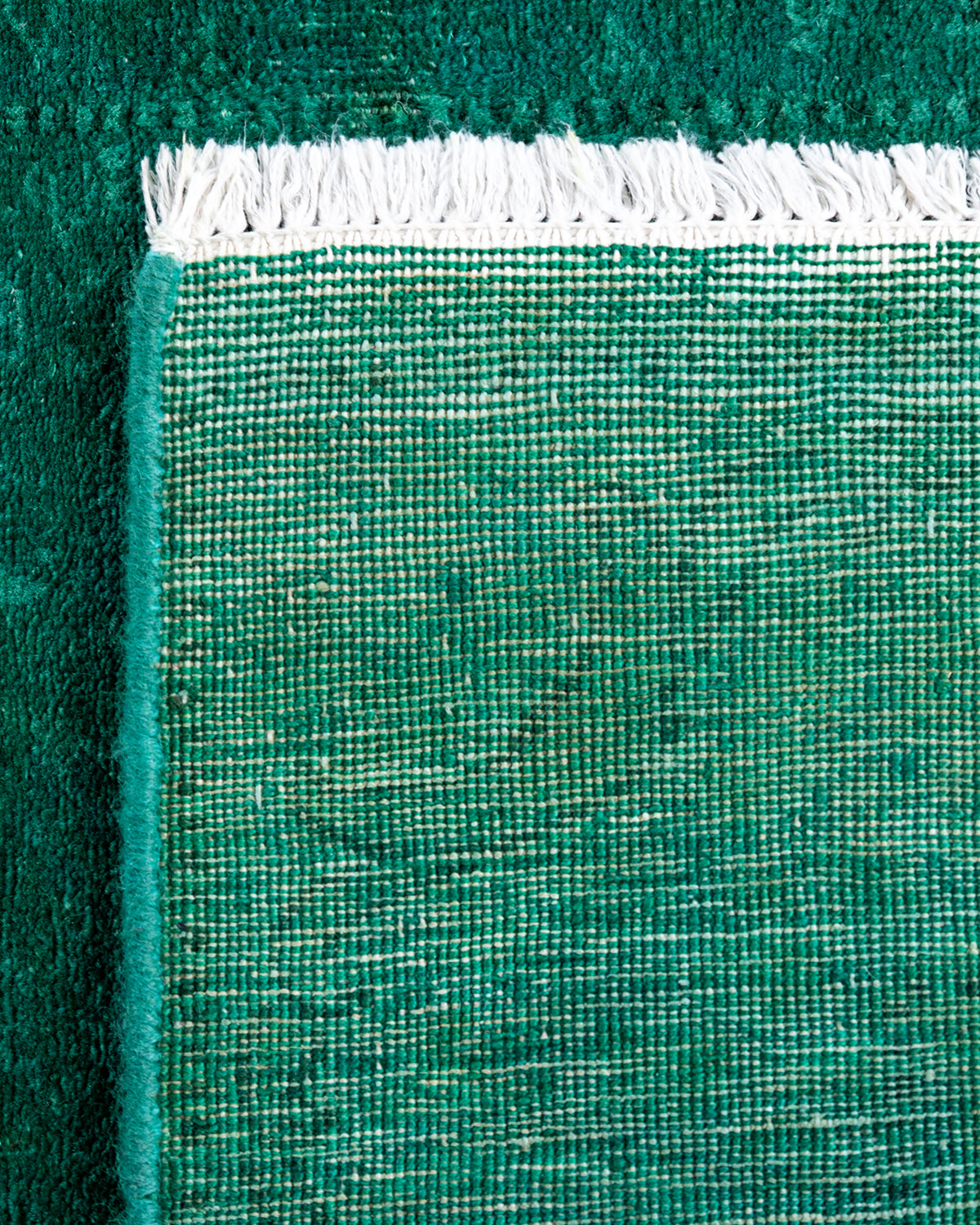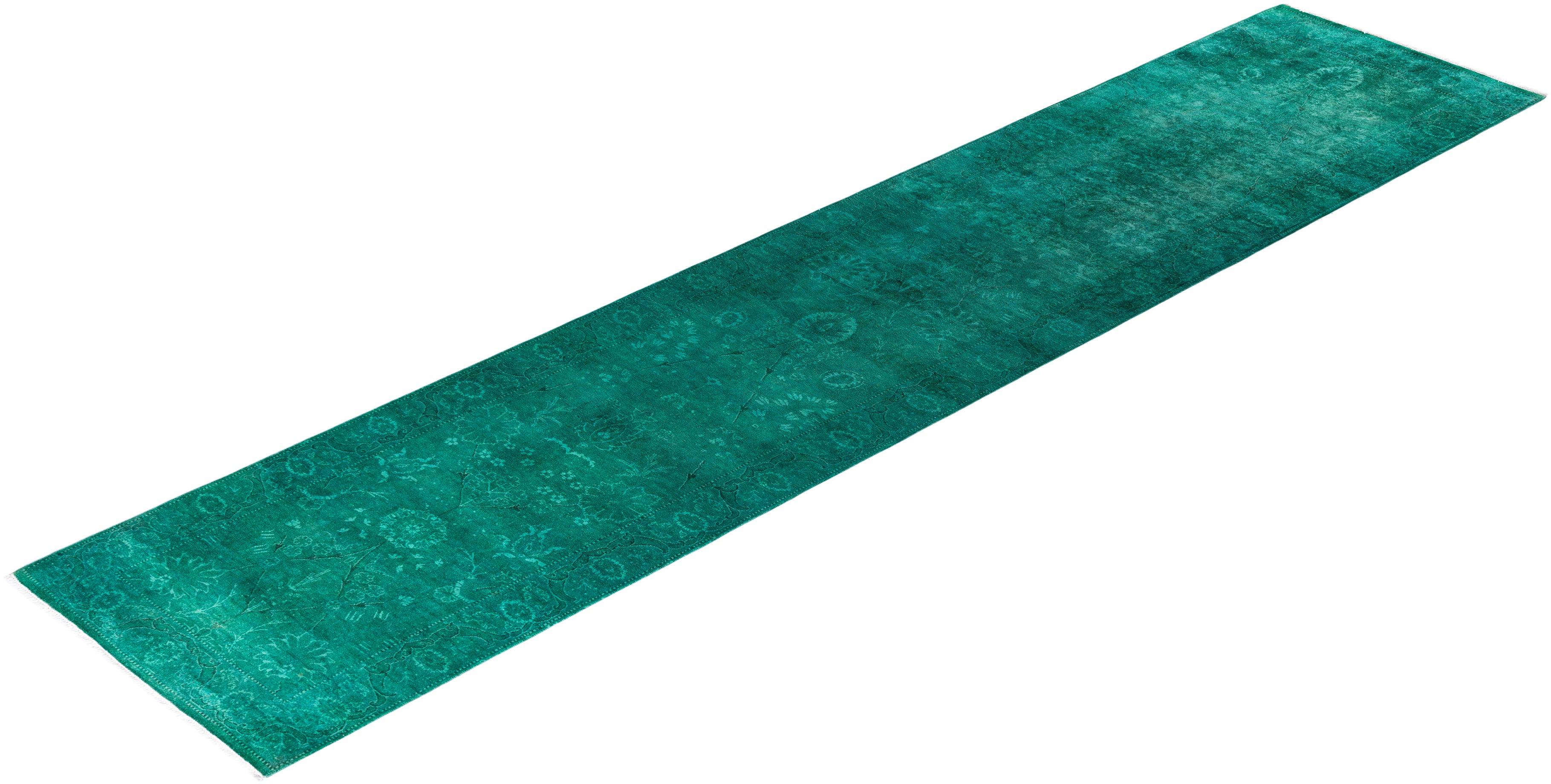 Contemporary Hand-Knotted Overdyed Green Runner 2' 7" x 11' 8"