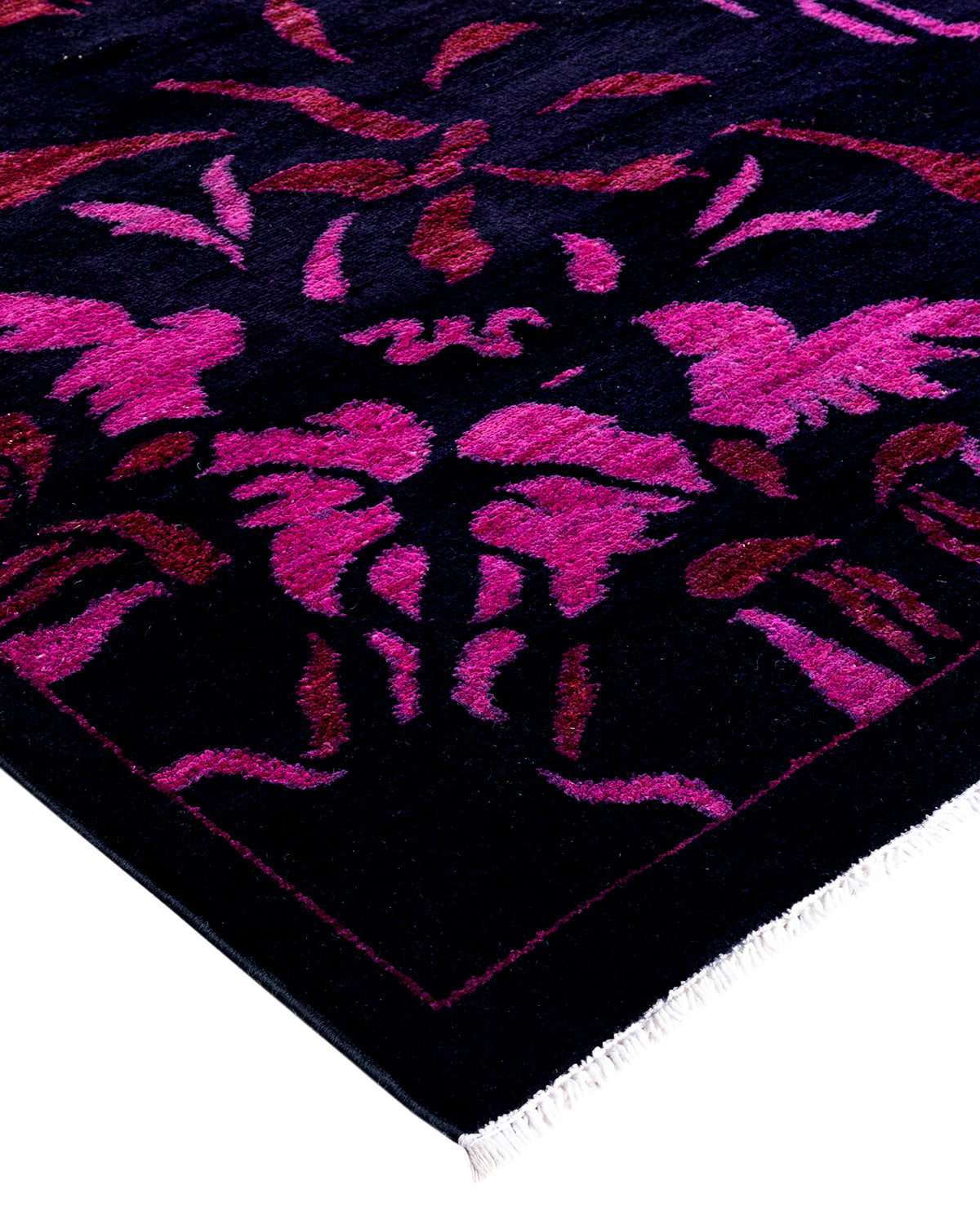 Contemporary Hand-Knotted Overdyed Black Area Rug 9' 10" x 13' 6"