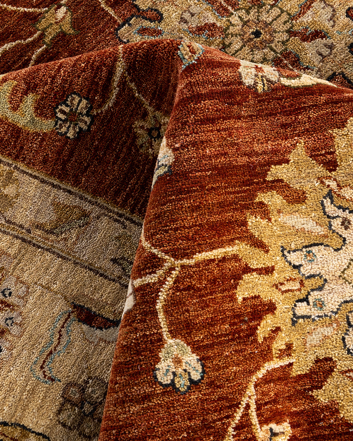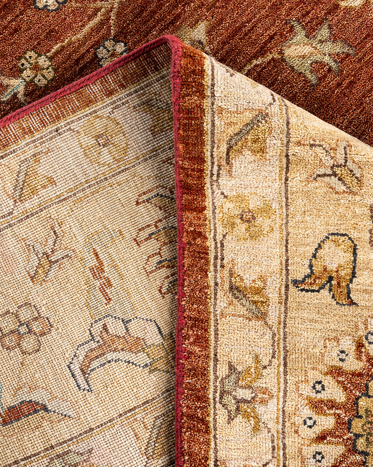 Originating centuries ago in what is now Turkey, Oushak rugs have long been sought after for their intricate patterns, lush yet subtle colors, and soft luster. These rugs continue that tradition. Hand-knotted of wool by skilled artisans, they will last for years—especially fortunate given that they will never fall out of fashion.