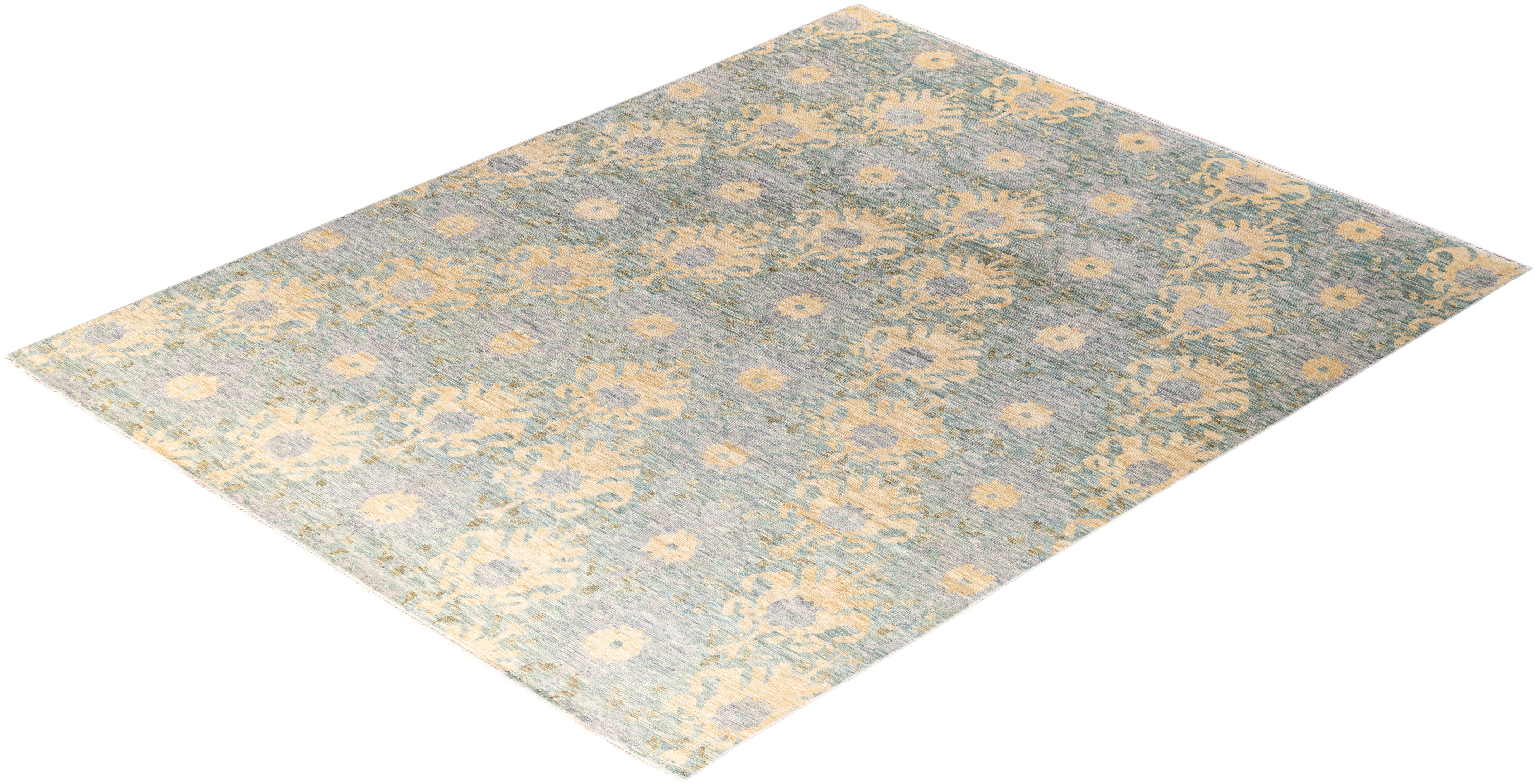 Contemporary Modern Hand Knotted Floral Wool Gray Area Rug 8' 2" x 10' 2"