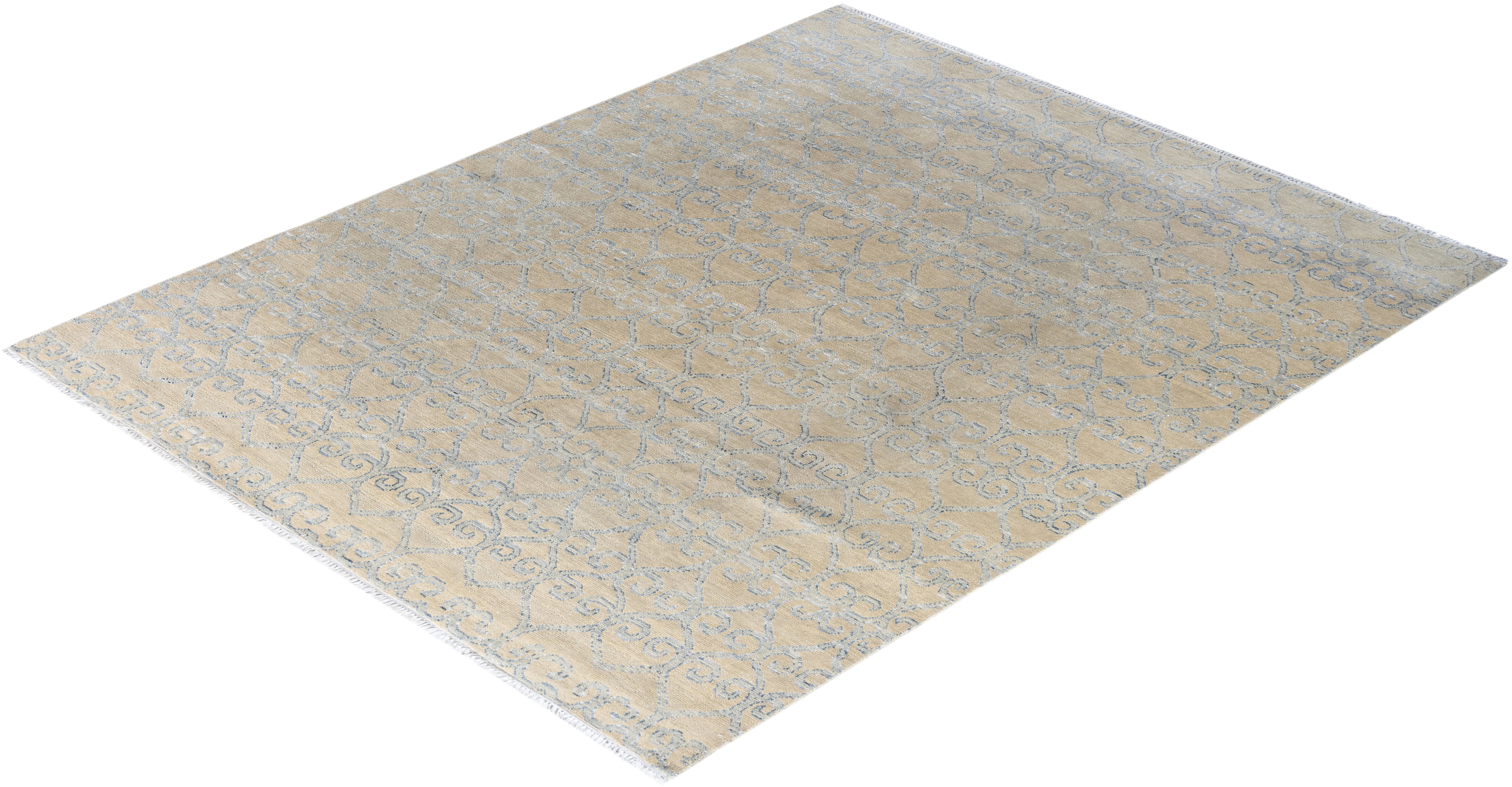 Contemporary Modern Hand Knotted Abstract Silk & Wool Blend Beige Area Rug 8' 0" x 9' 10"