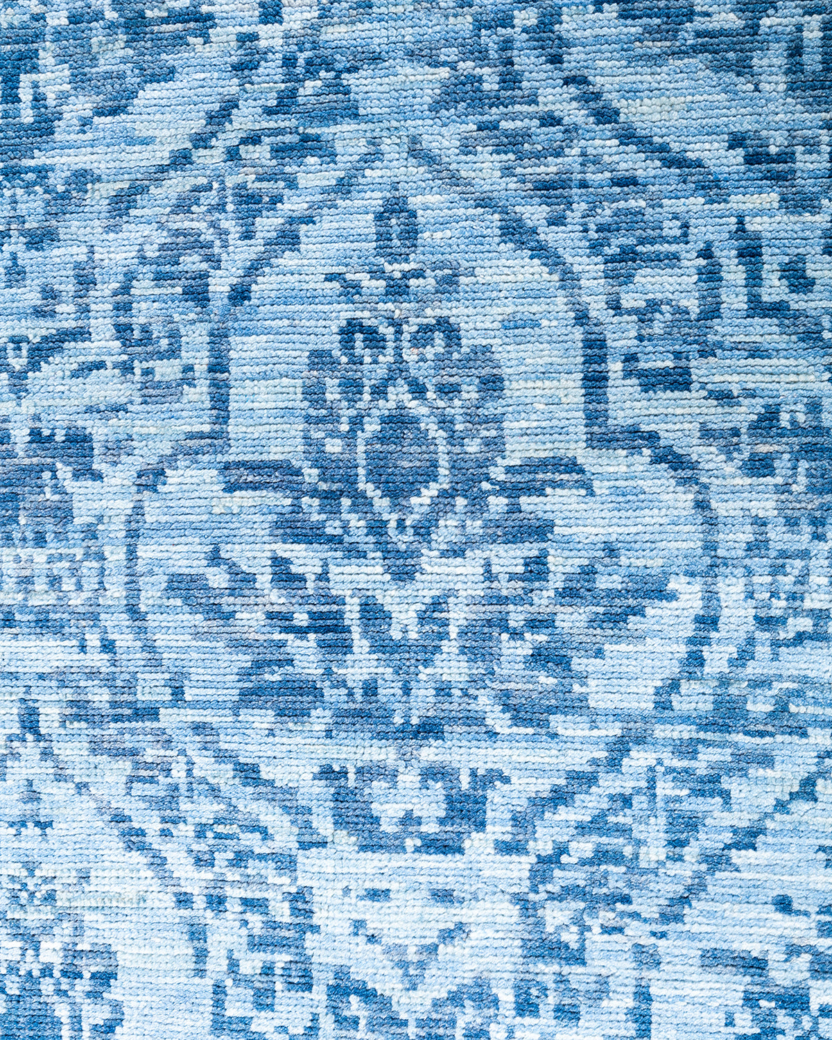 Contemporary Modern Hand Knotted Floral Wool Blue Area Rug 8' 1" x 10' 1"