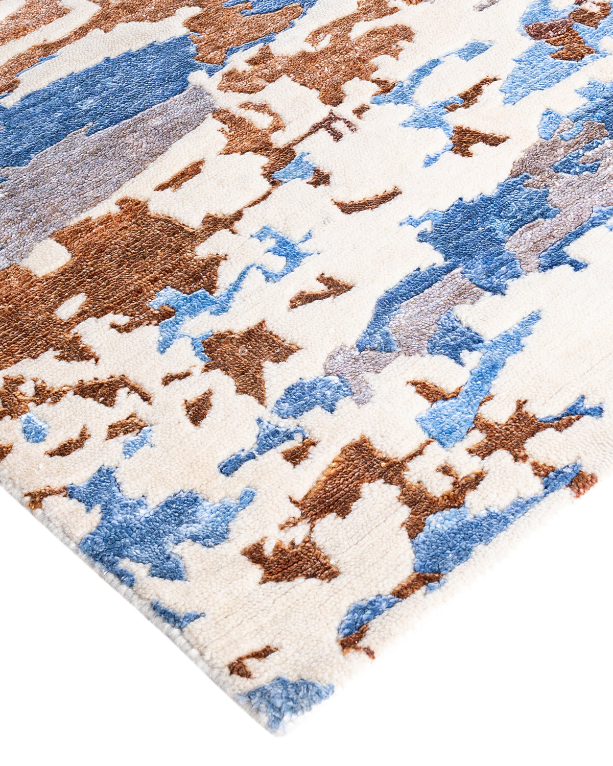 Contemporary Modern Hand Knotted Abstract Silk & Wool Blend Ivory Area Rug 8' 2" x 10' 1"