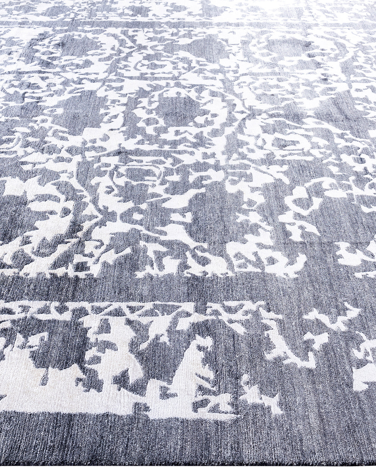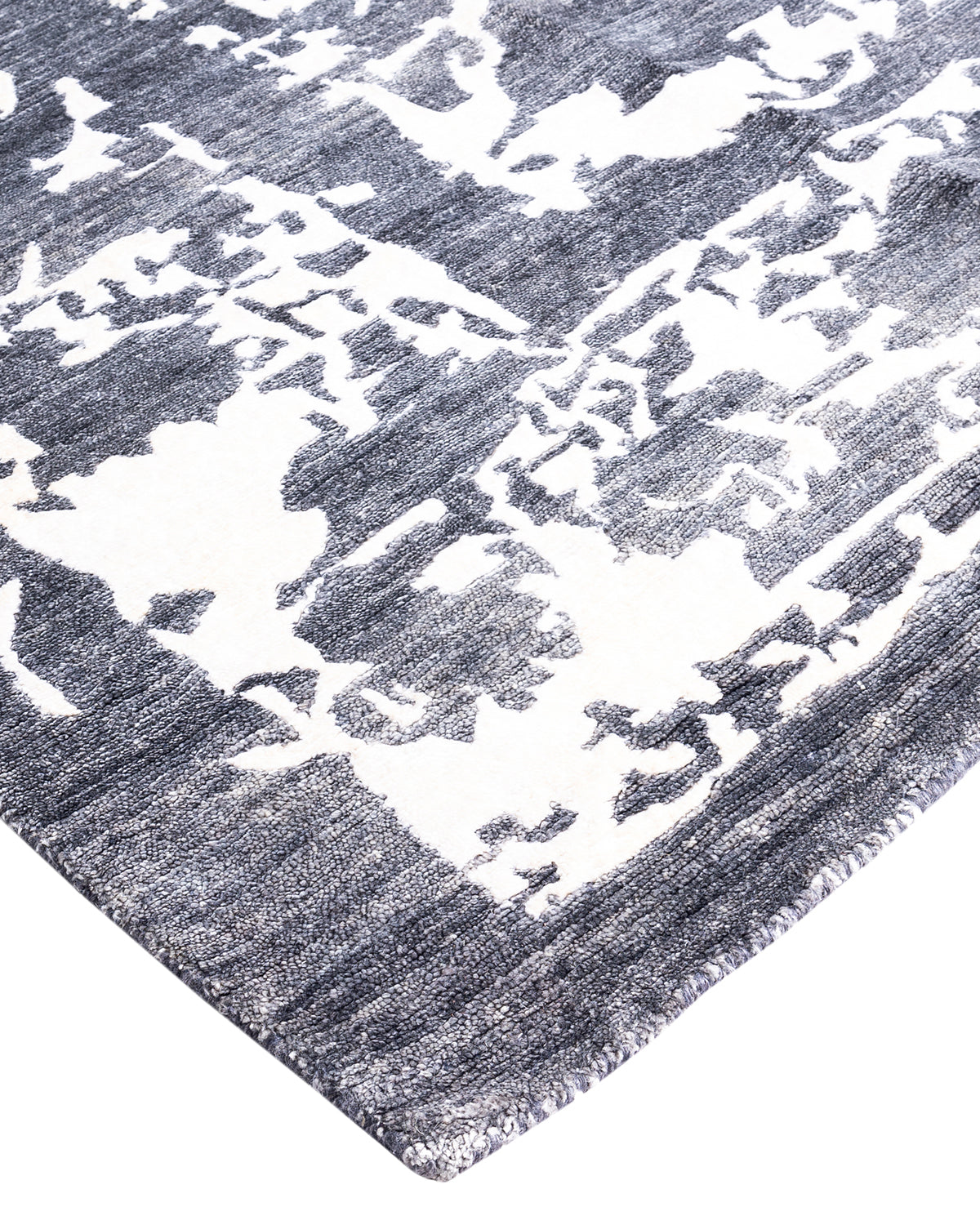Contemporary Modern Hand Knotted Abstract Silk Black Area Rug 8' 1" x 10' 2"