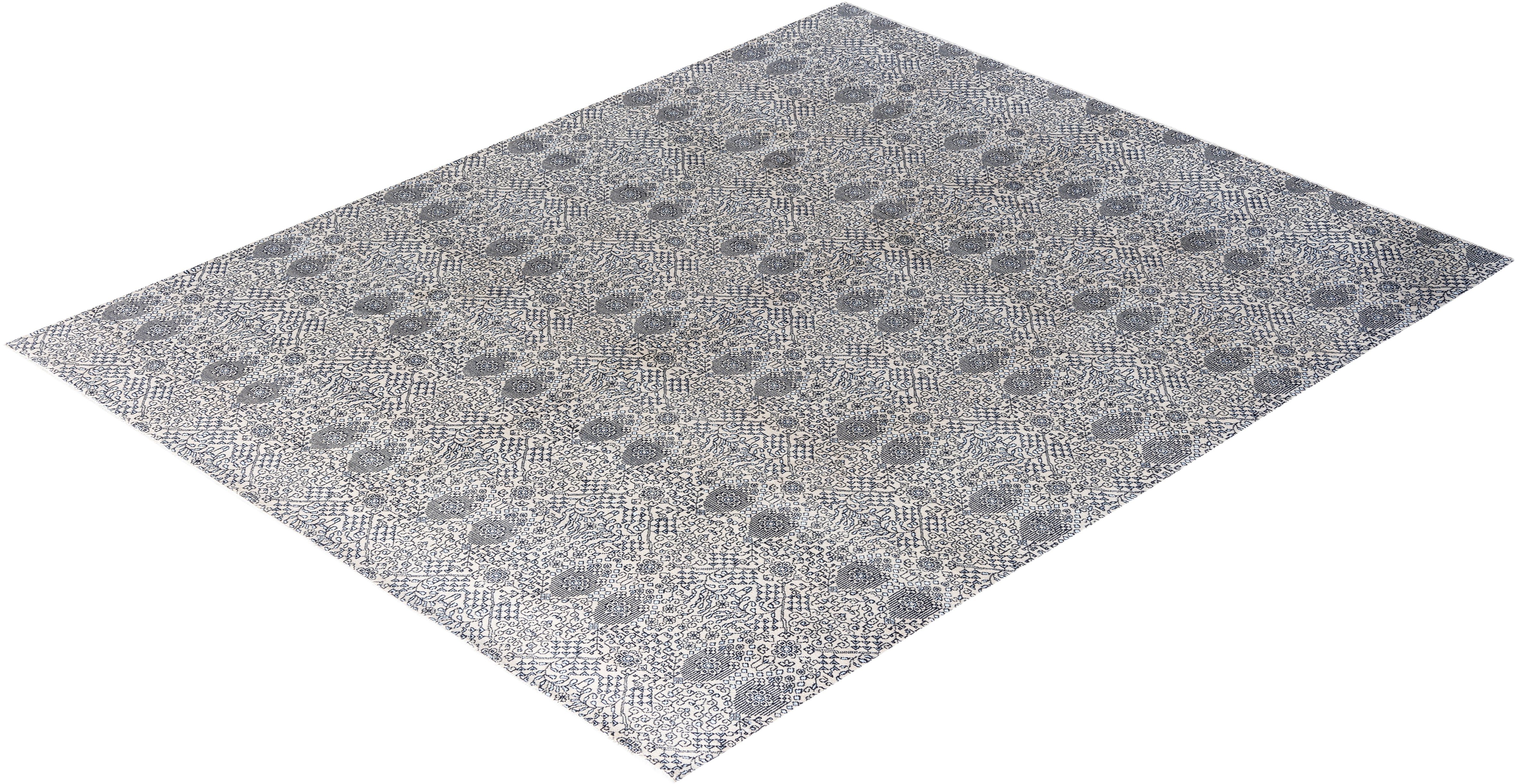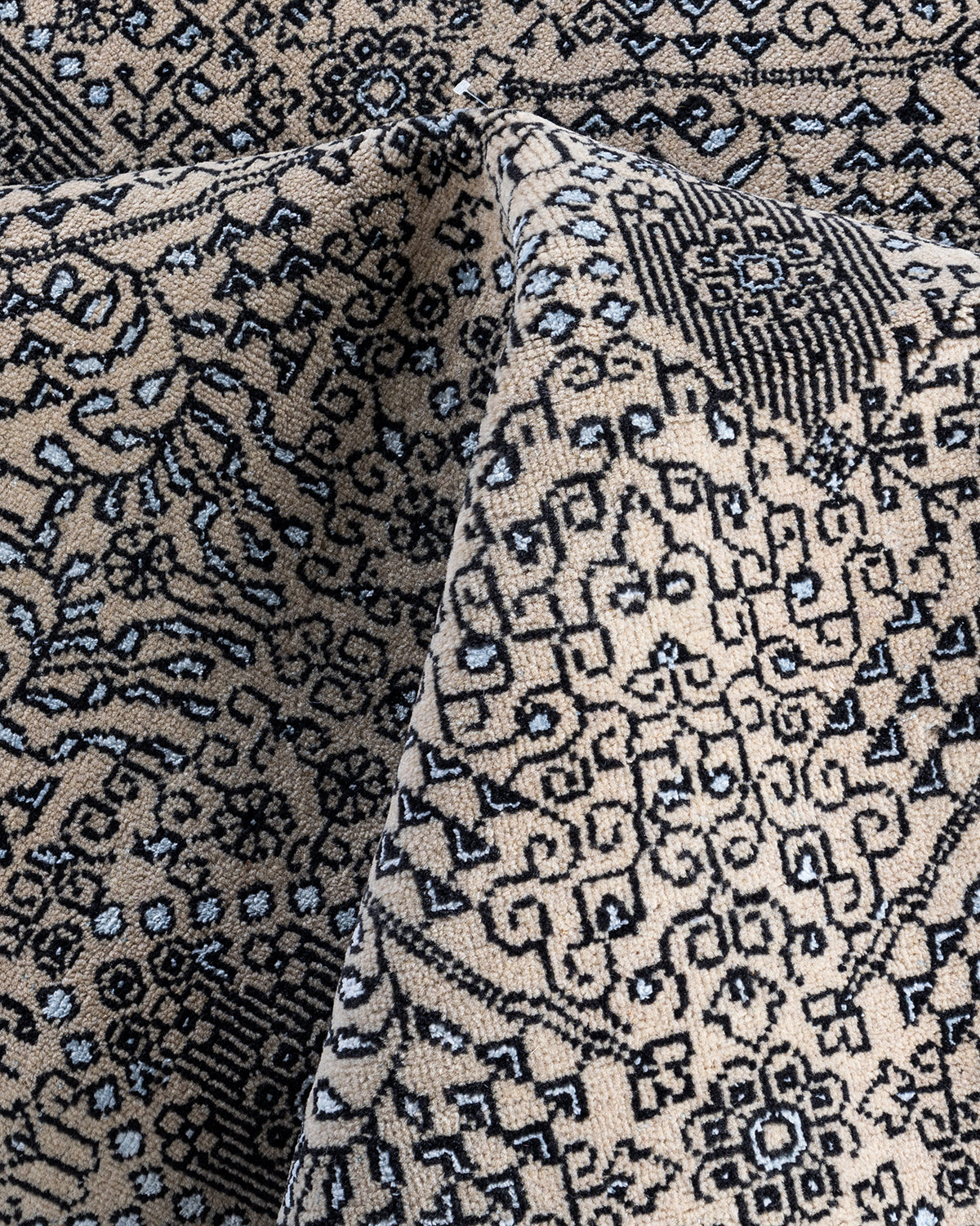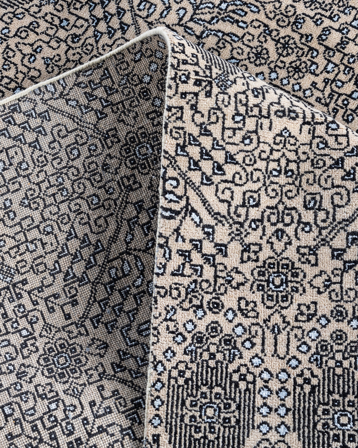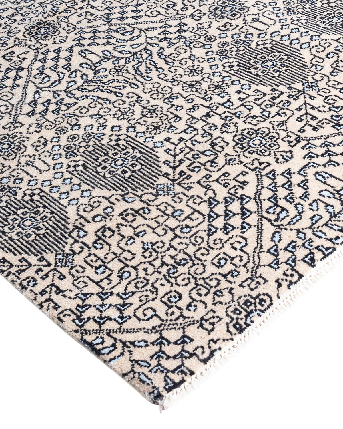 Traditional Ikat Hand Knotted Geometric Silk & Wool Blend Beige Area Rug 8' 1" x 10' 0"
