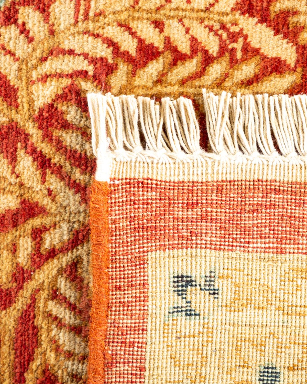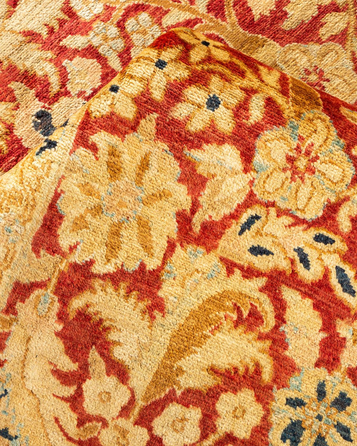 Traditional Hand Knotted Mogul Floral Orange Area Rug 6' 0" x 9' 6"