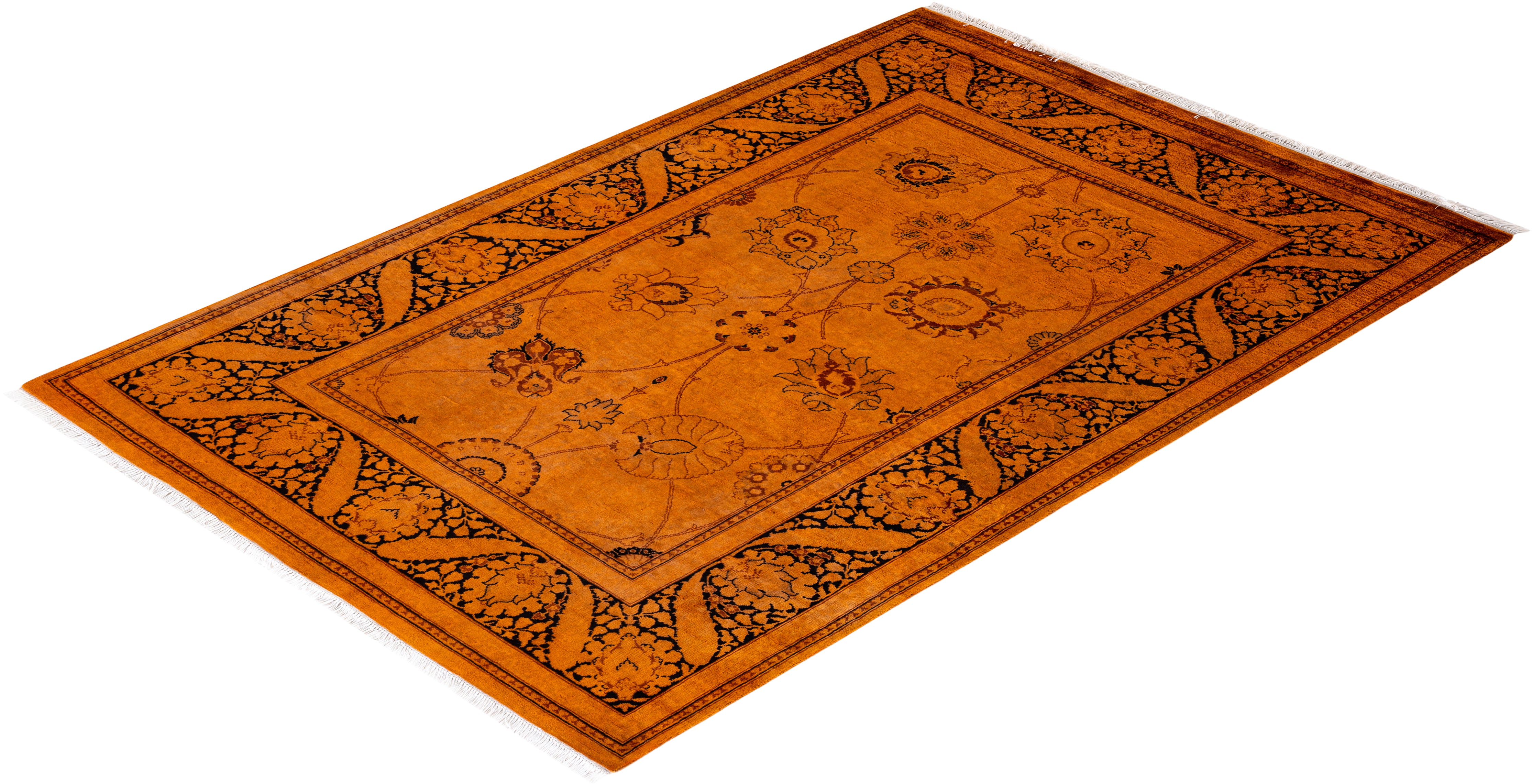 Contemporary Hand-Knotted Overdyed Orange Area Rug 4' 2" x 6' 3"