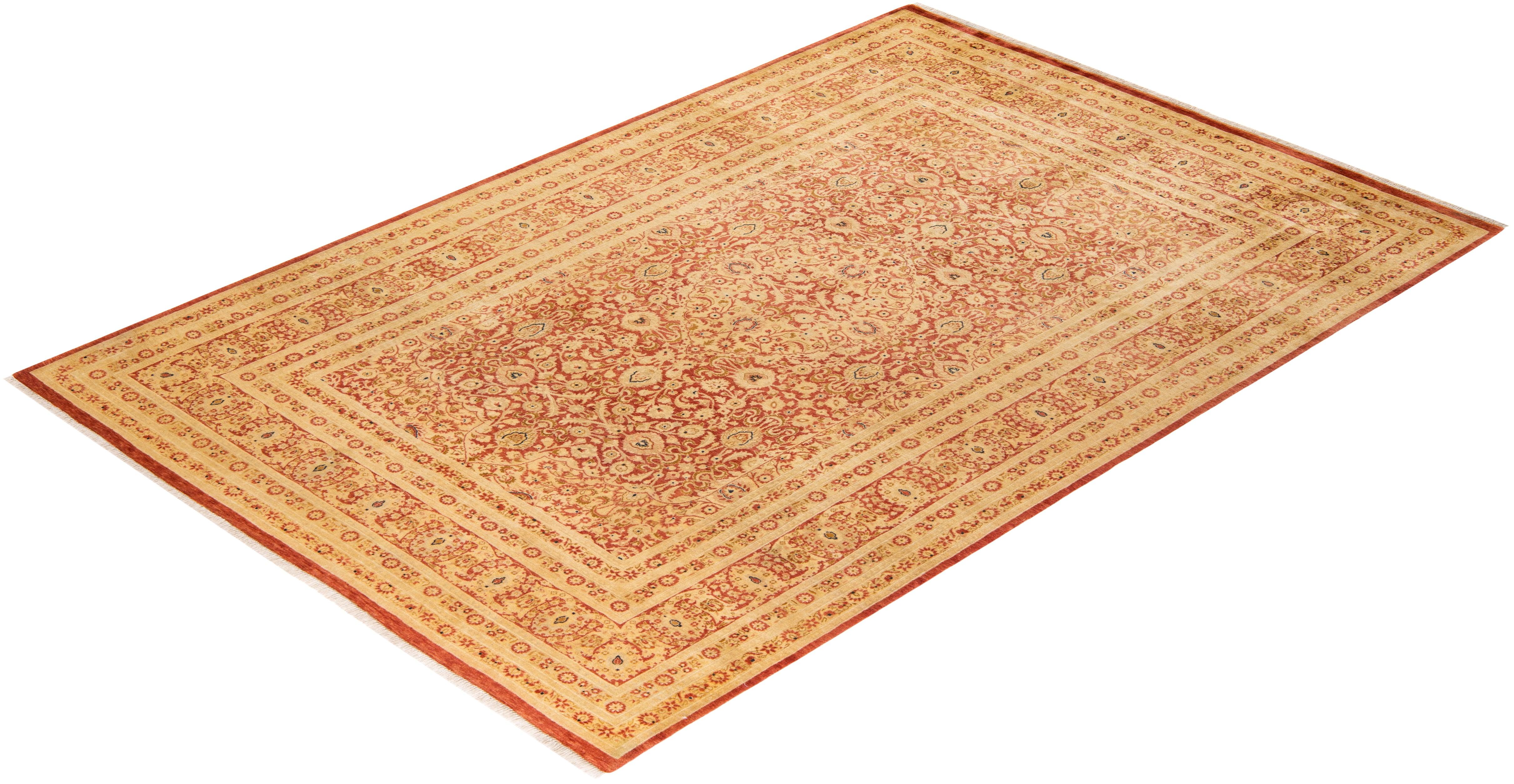 Traditional Hand Knotted Mogul Floral Orange Area Rug 6' 2" x 9' 1"