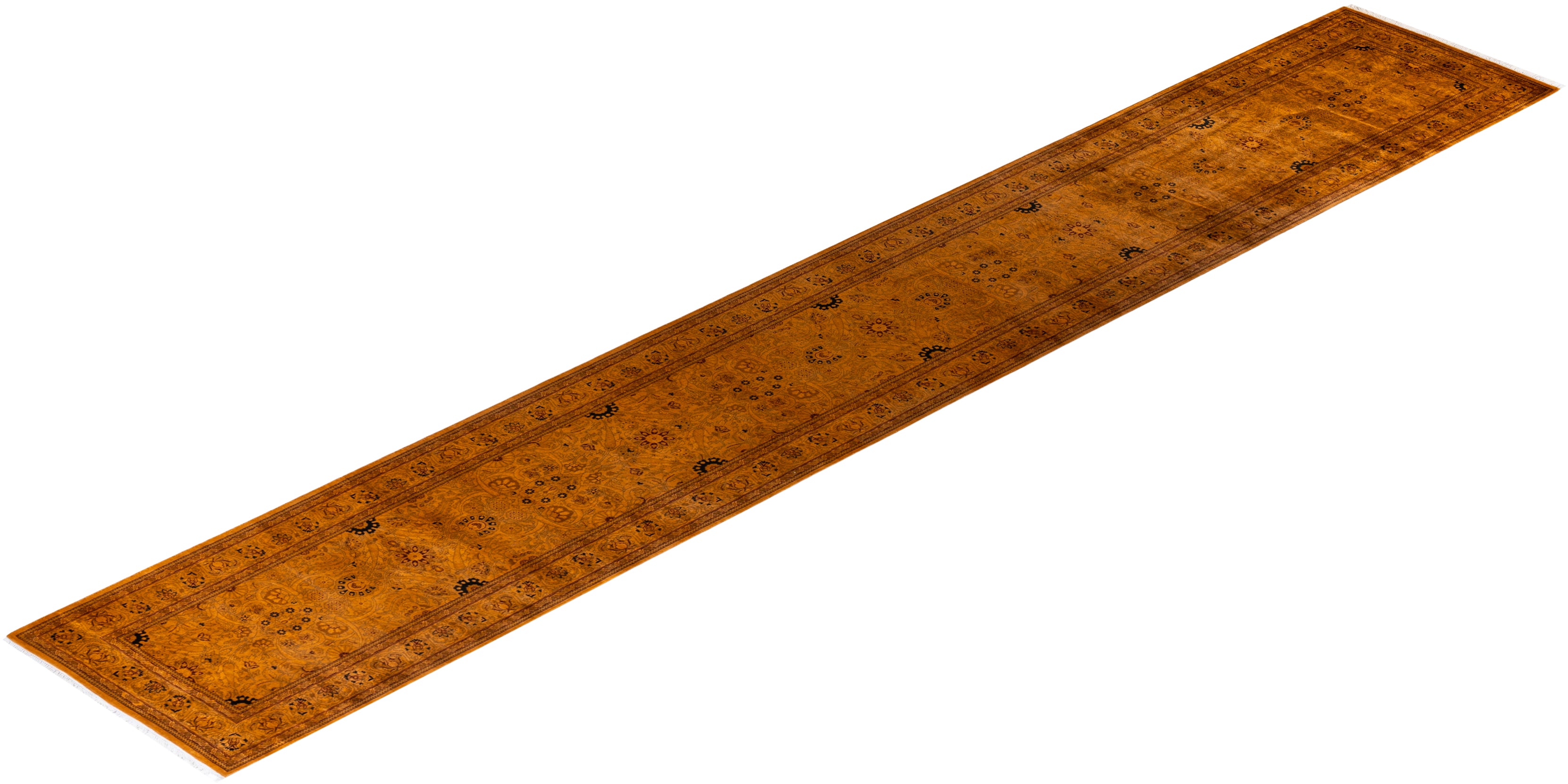Contemporary Hand Knotted Overdyed Orange Runner 2' 7" x 16' 8"