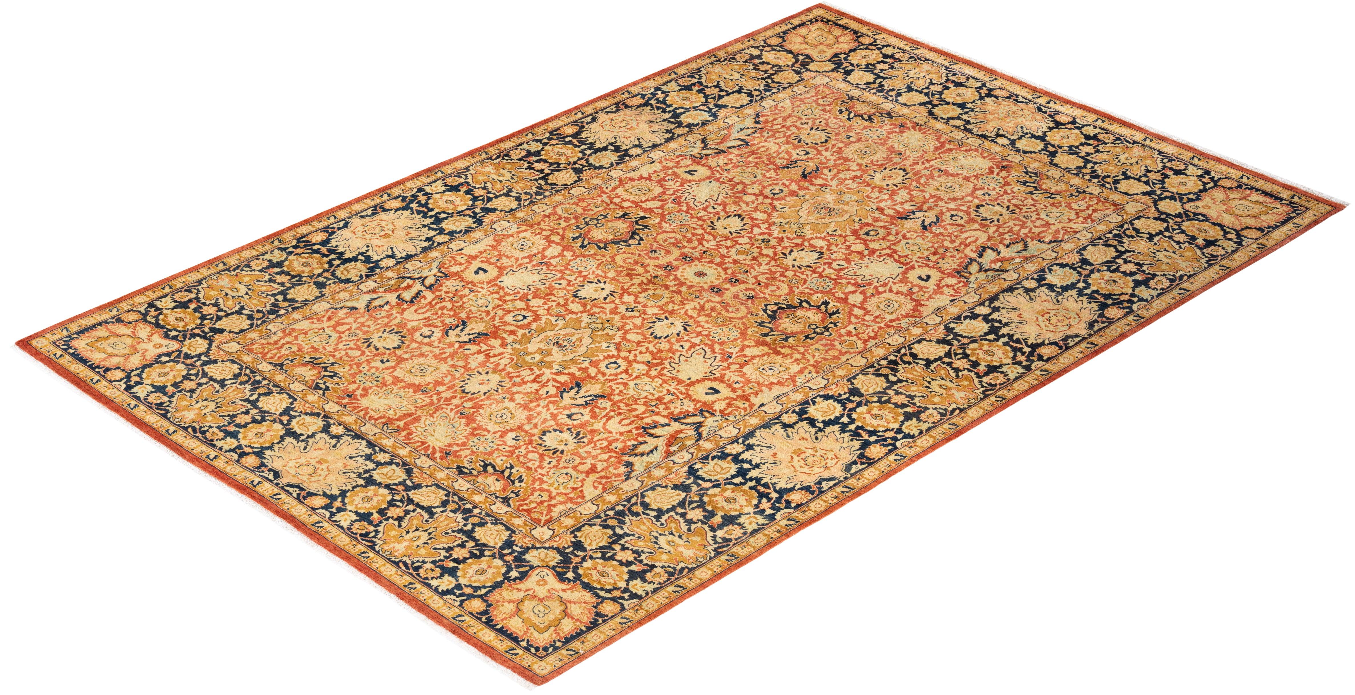 Traditional Hand Knotted Mogul Oriental Orange Area Rug 6' 1" x 9' 4"