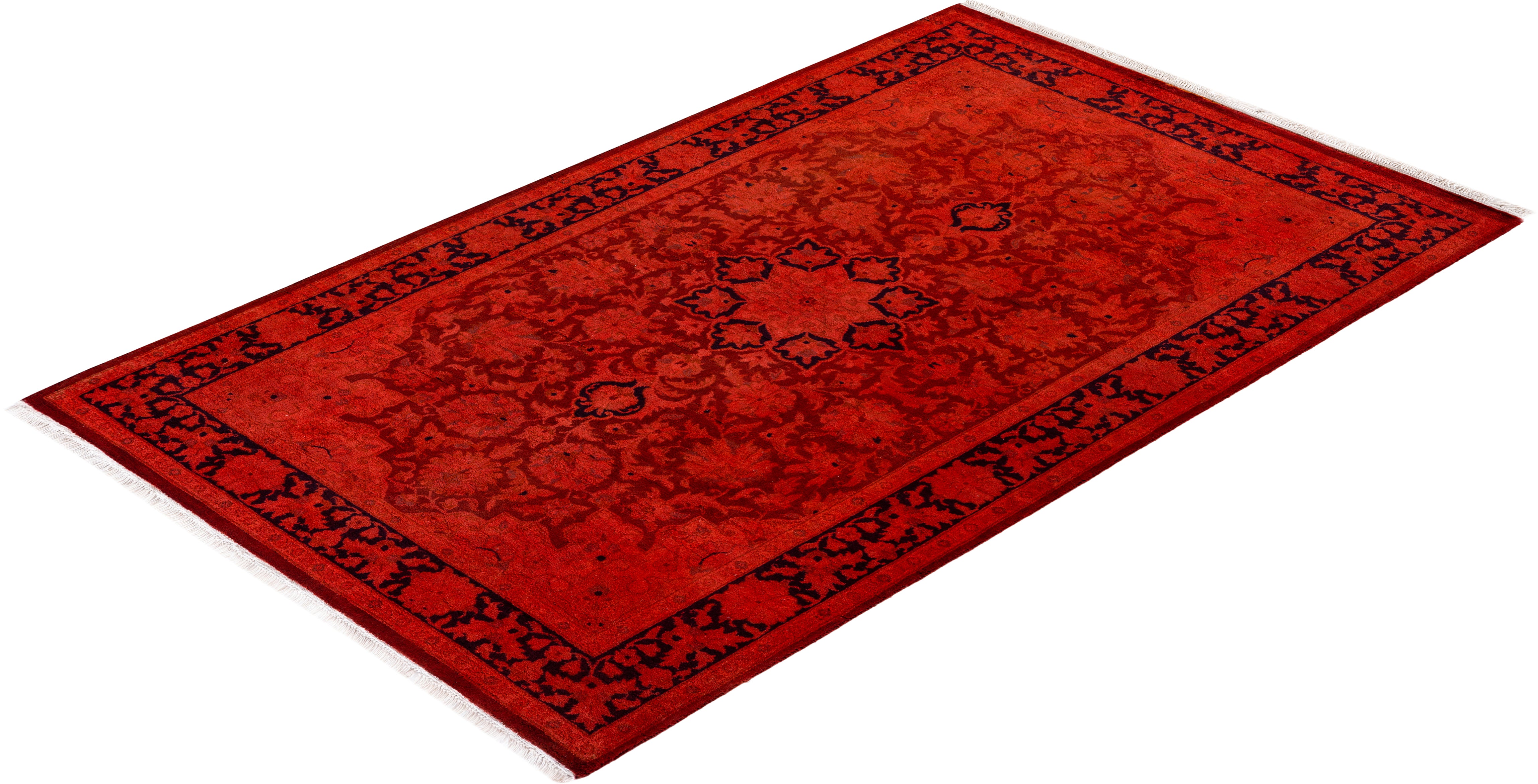Contemporary Hand-Knotted Overdyed Orange Area Rug 3' 2" x 5' 2"