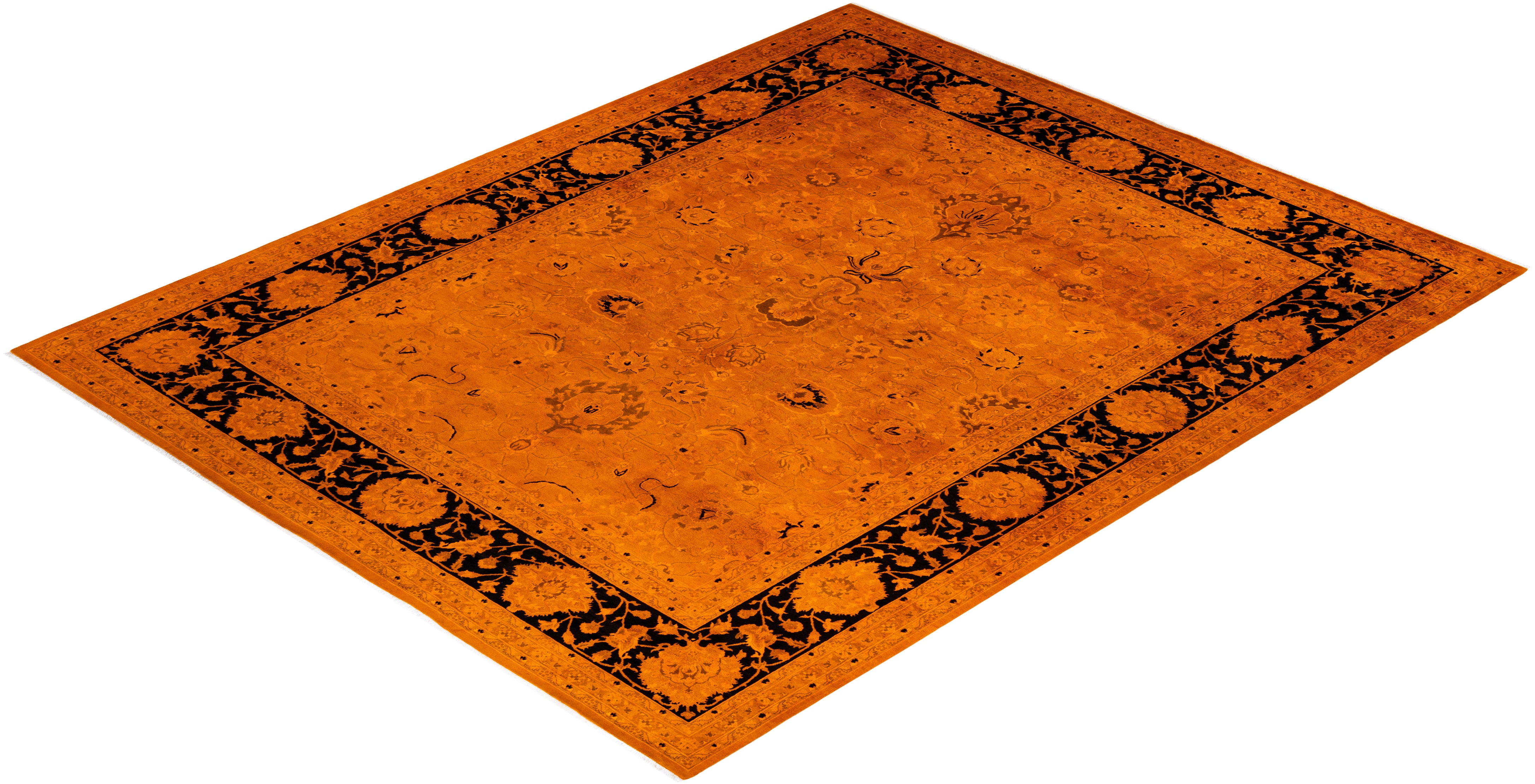 Contemporary Hand Knotted Overdyed Orange Area Rug 8' 3" x 10' 4"
