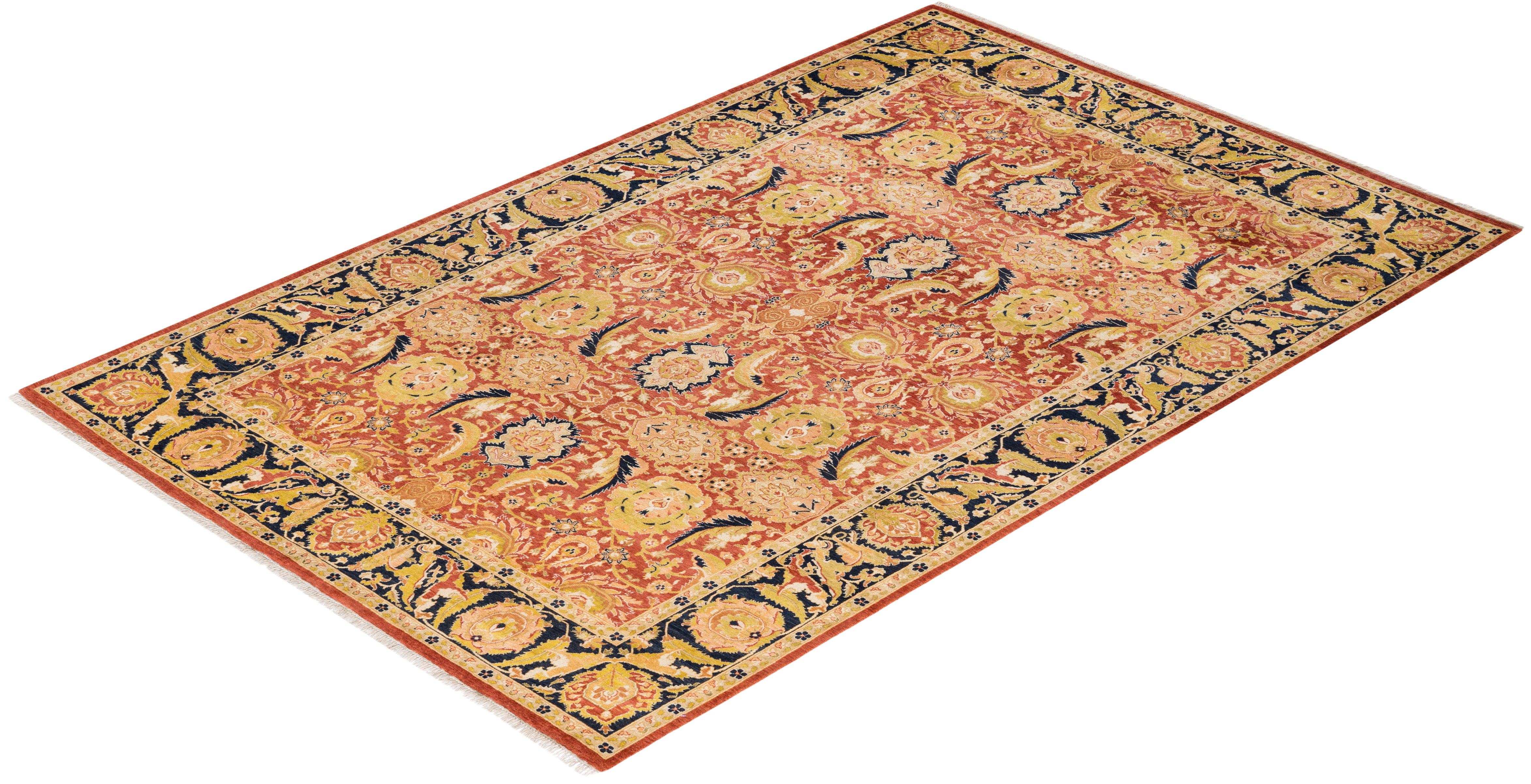 Traditional Hand Knotted Mogul Oriental Orange Area Rug 6' 0" x 9' 5"