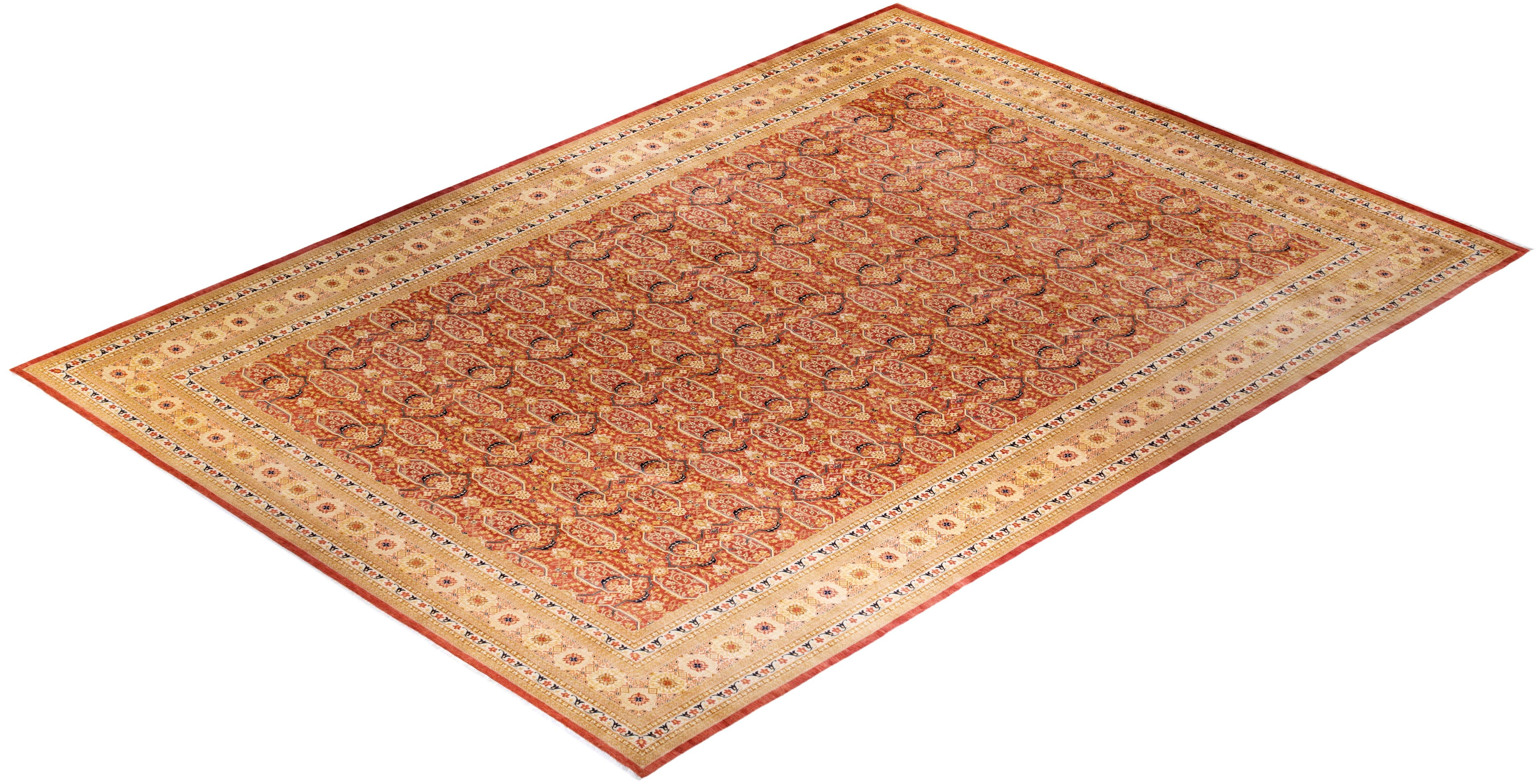 Traditional Hand Knotted Mogul Oriental Orange Area Rug 12' 2" x 17' 4"
