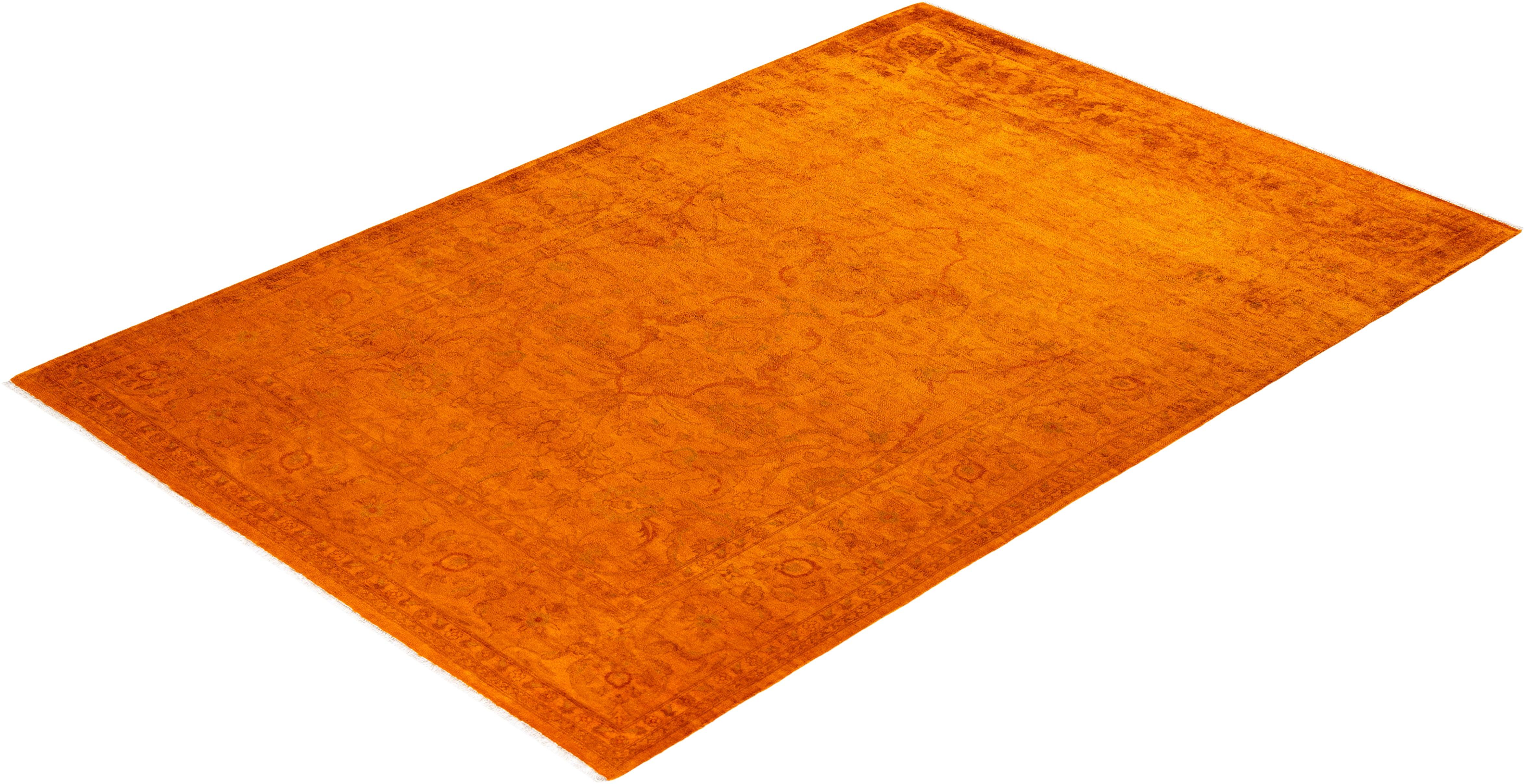 Contemporary Hand-Knotted Orange Area Rug 6' 1" x 9' 0"
