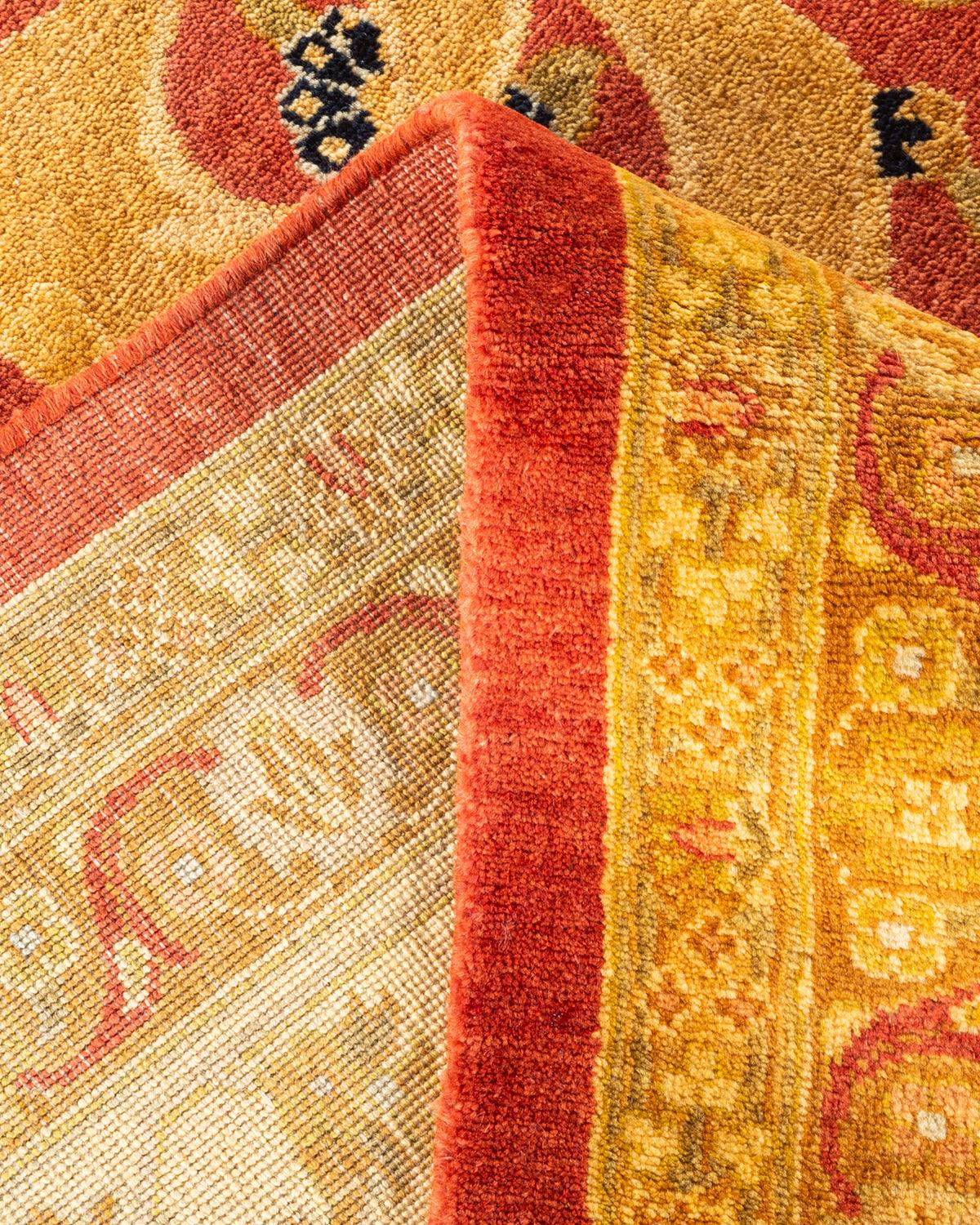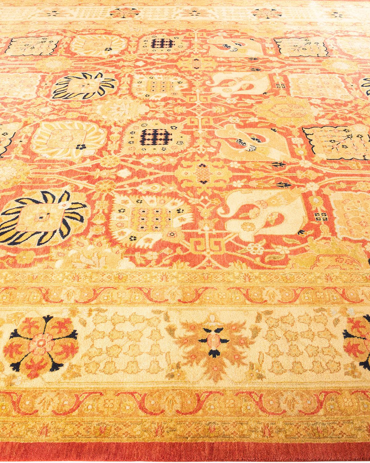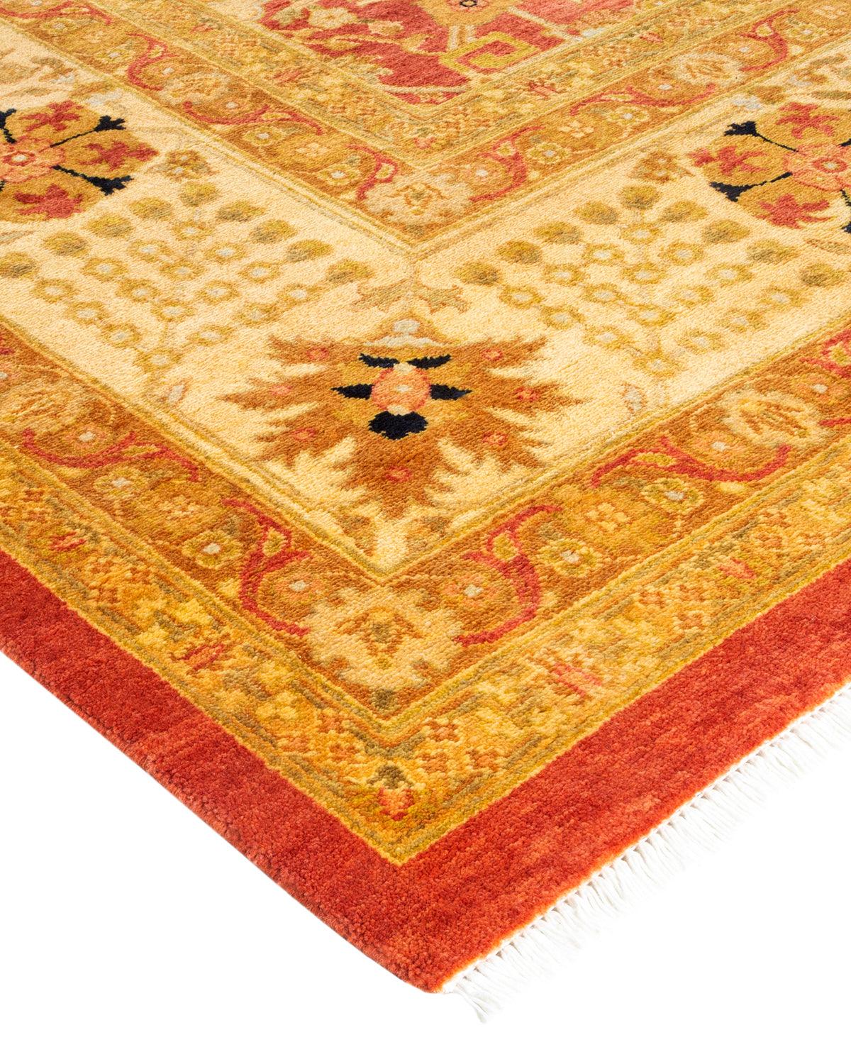 Contemporary Hand Knotted Eclectic Floral Orange Area Rug 9' 1" x 12' 1"