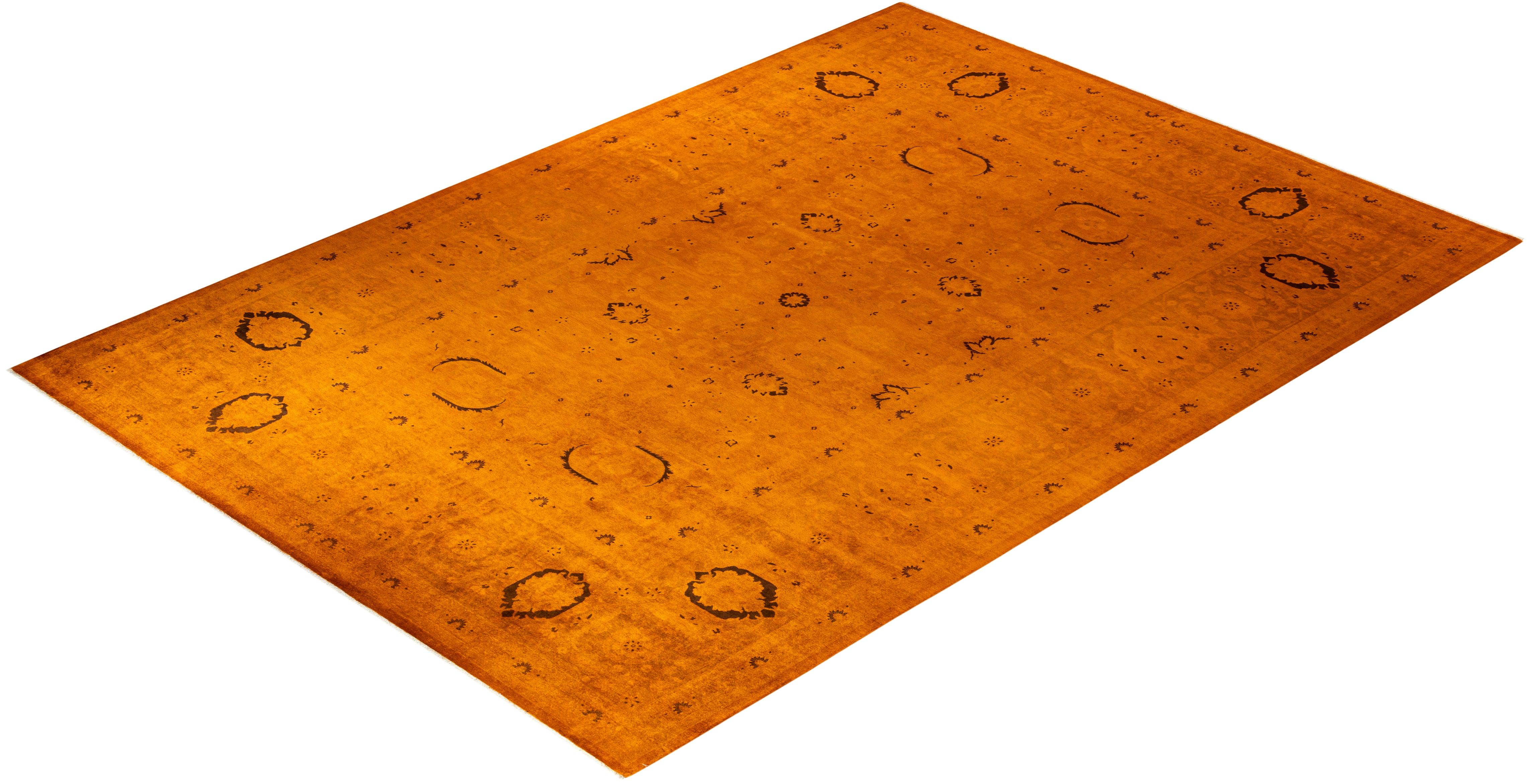 Contemporary Hand-Knotted Orange Area Rug 10' 3" x 14' 3"