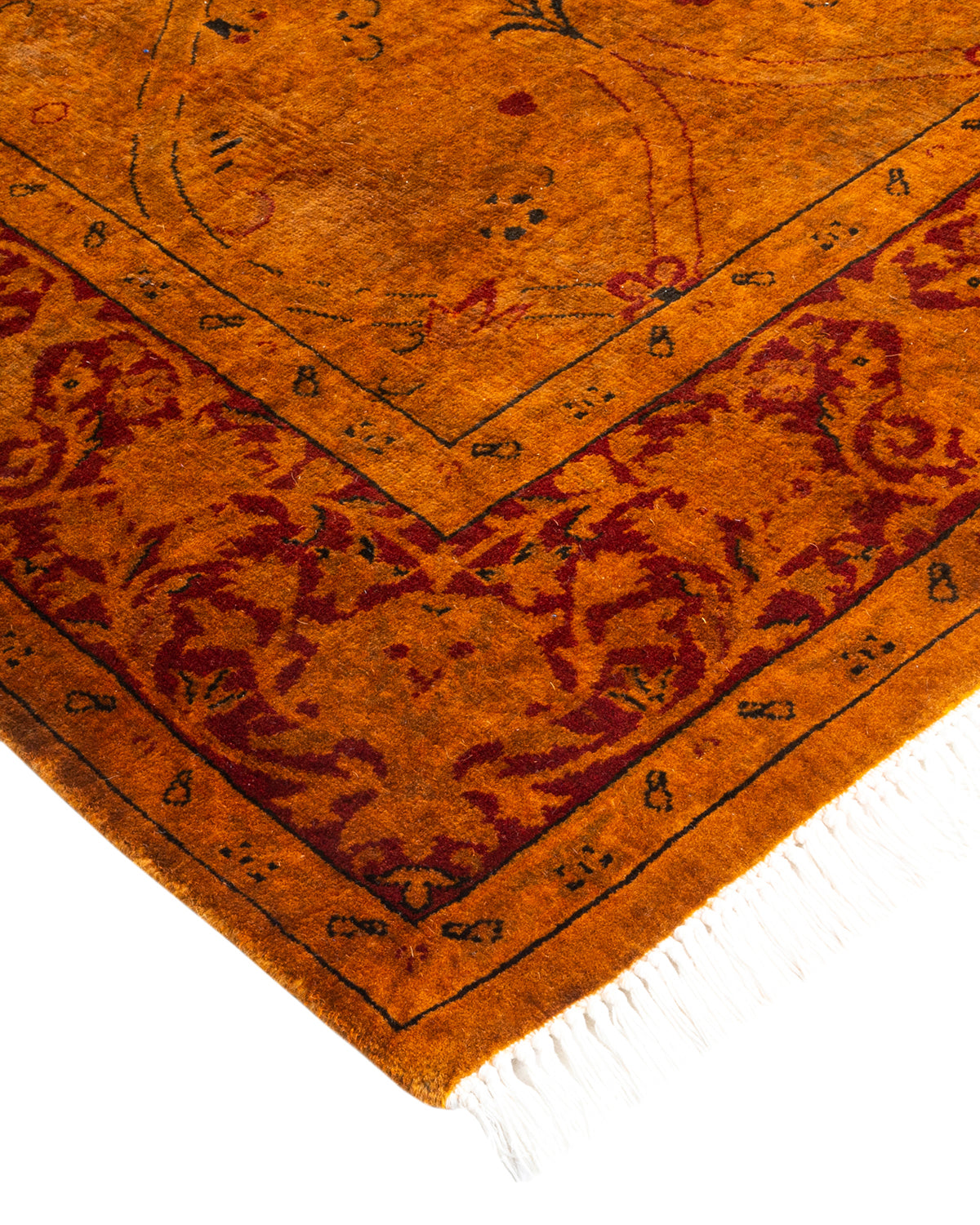 Contemporary Hand Knotted Overdyed Orange Area Rug 4' 1" x 6' 2"