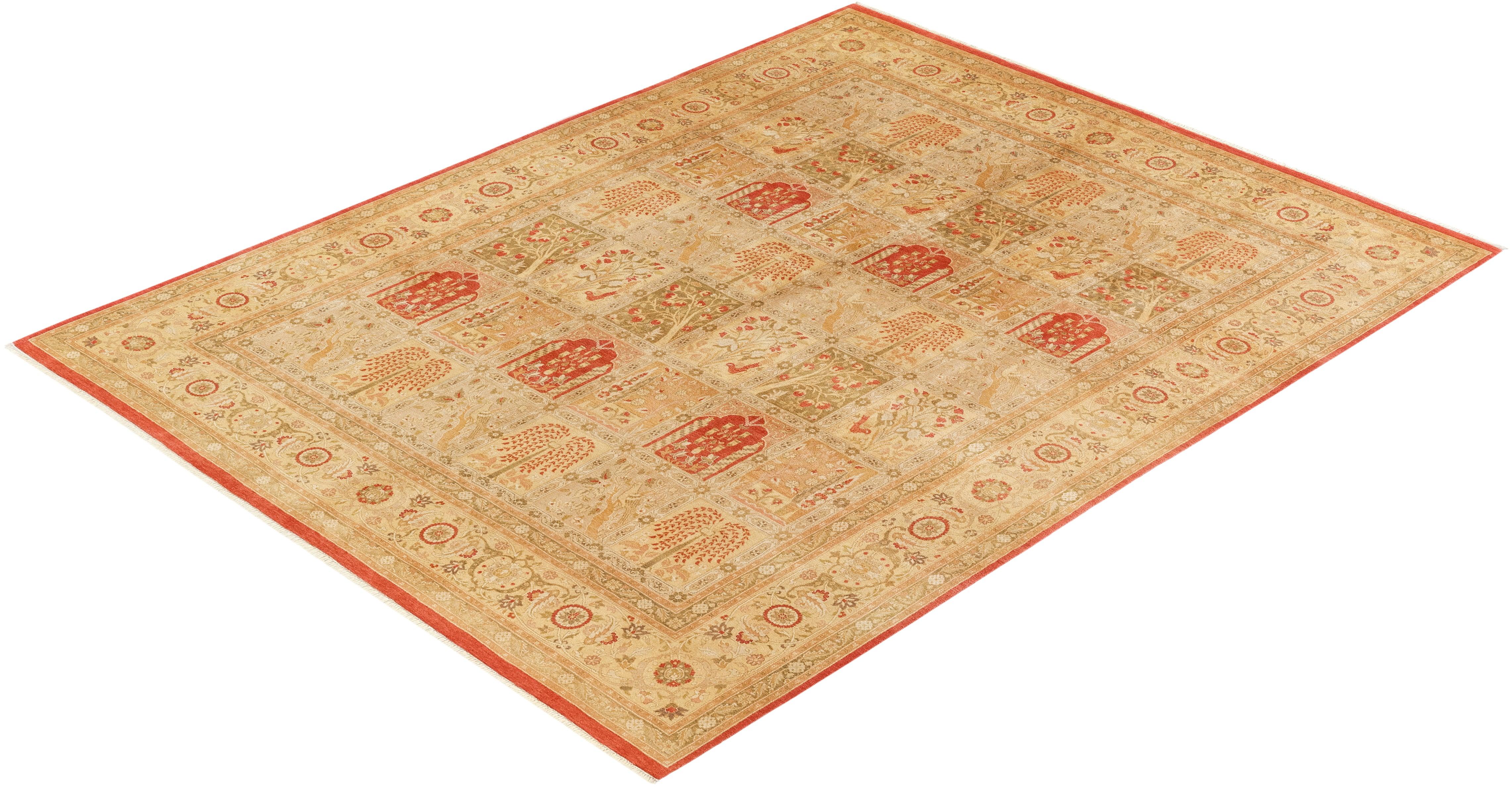 Traditional Hand Knotted Mogul Floral Orange Area Rug 8' 3" x 10' 5"
