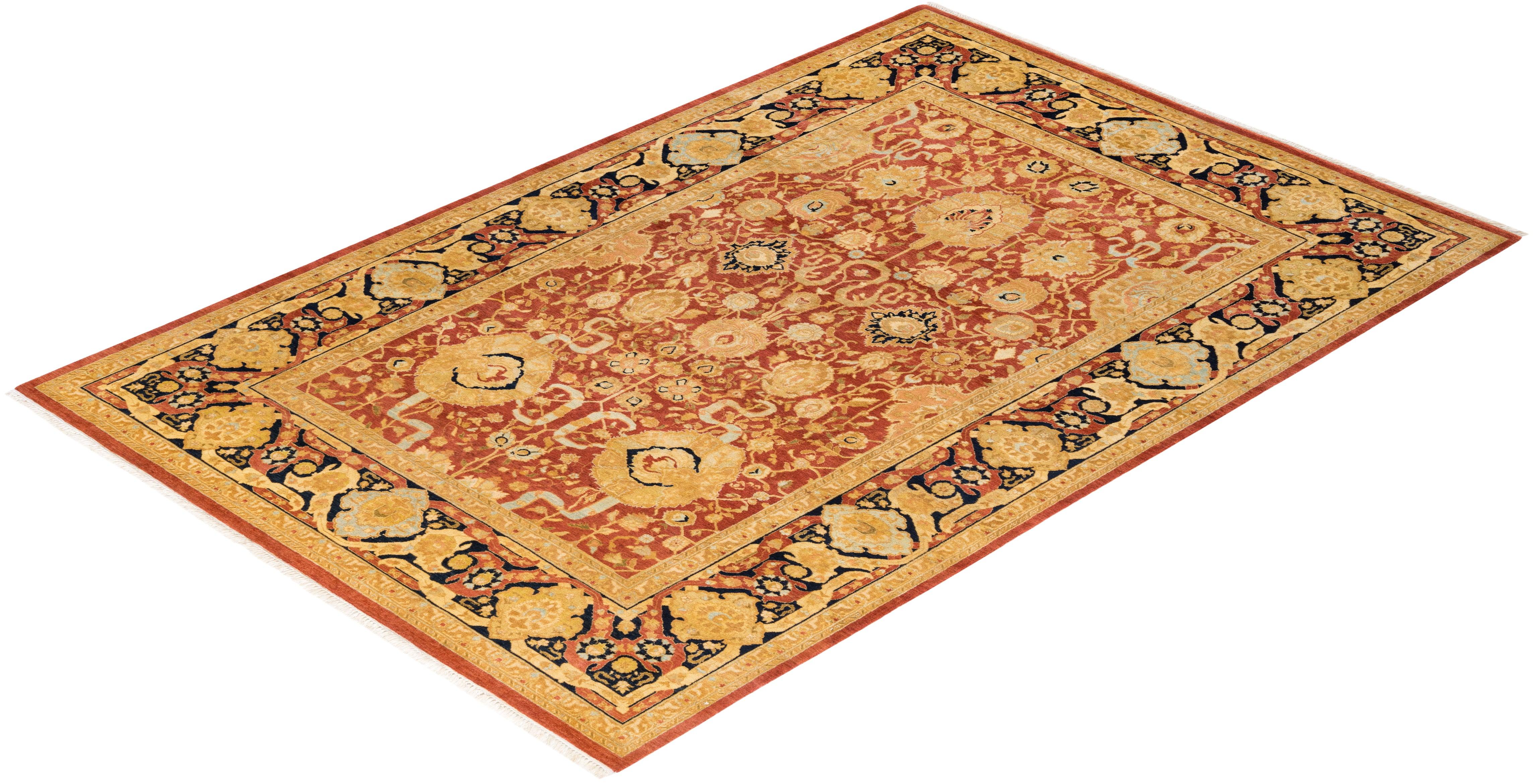 Traditional Hand Knotted Mogul Oriental Orange Area Rug 6' 2" x 9' 4"
