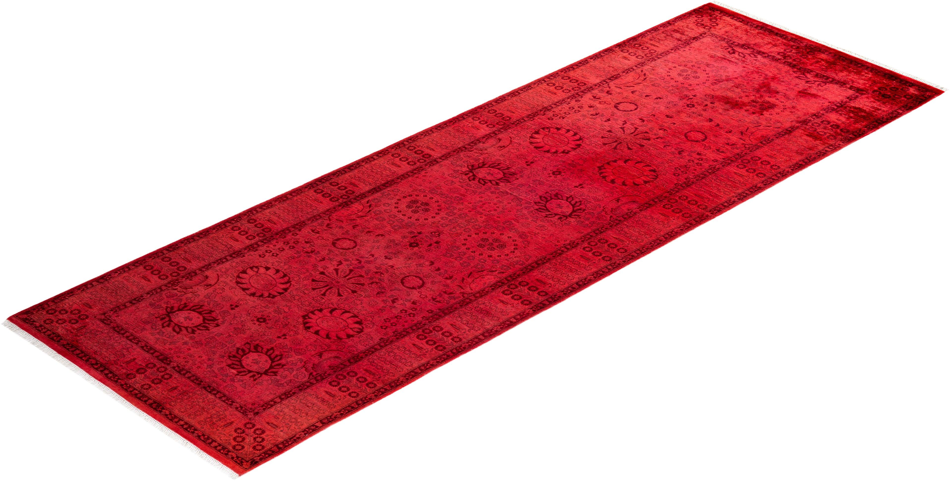 Contemporary Hand-Knotted Orange Runner 3' 1" x 9' 1"