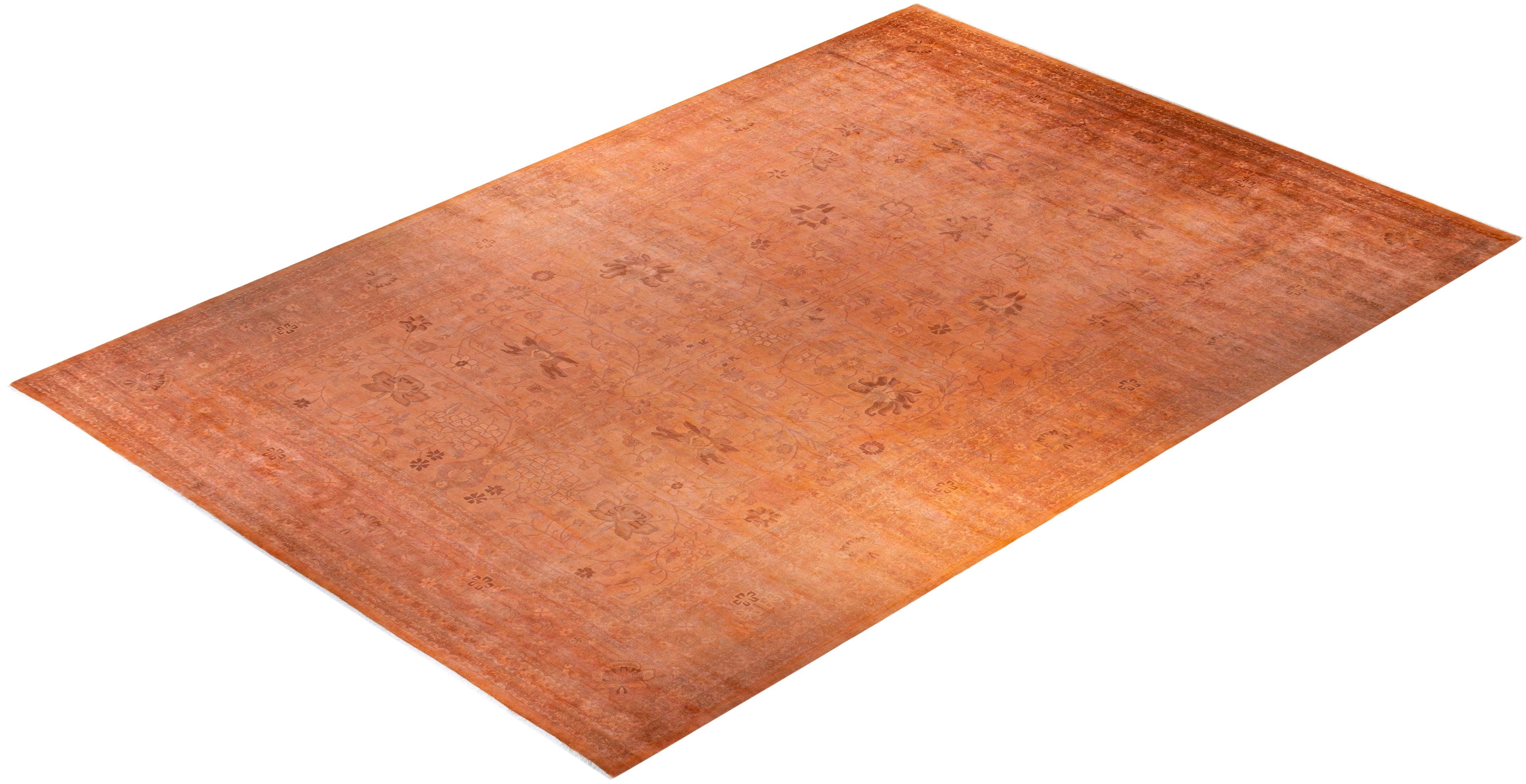 Contemporary Hand Knotted Overdyed Orange Area Rug 17' 10" x 12' 3"