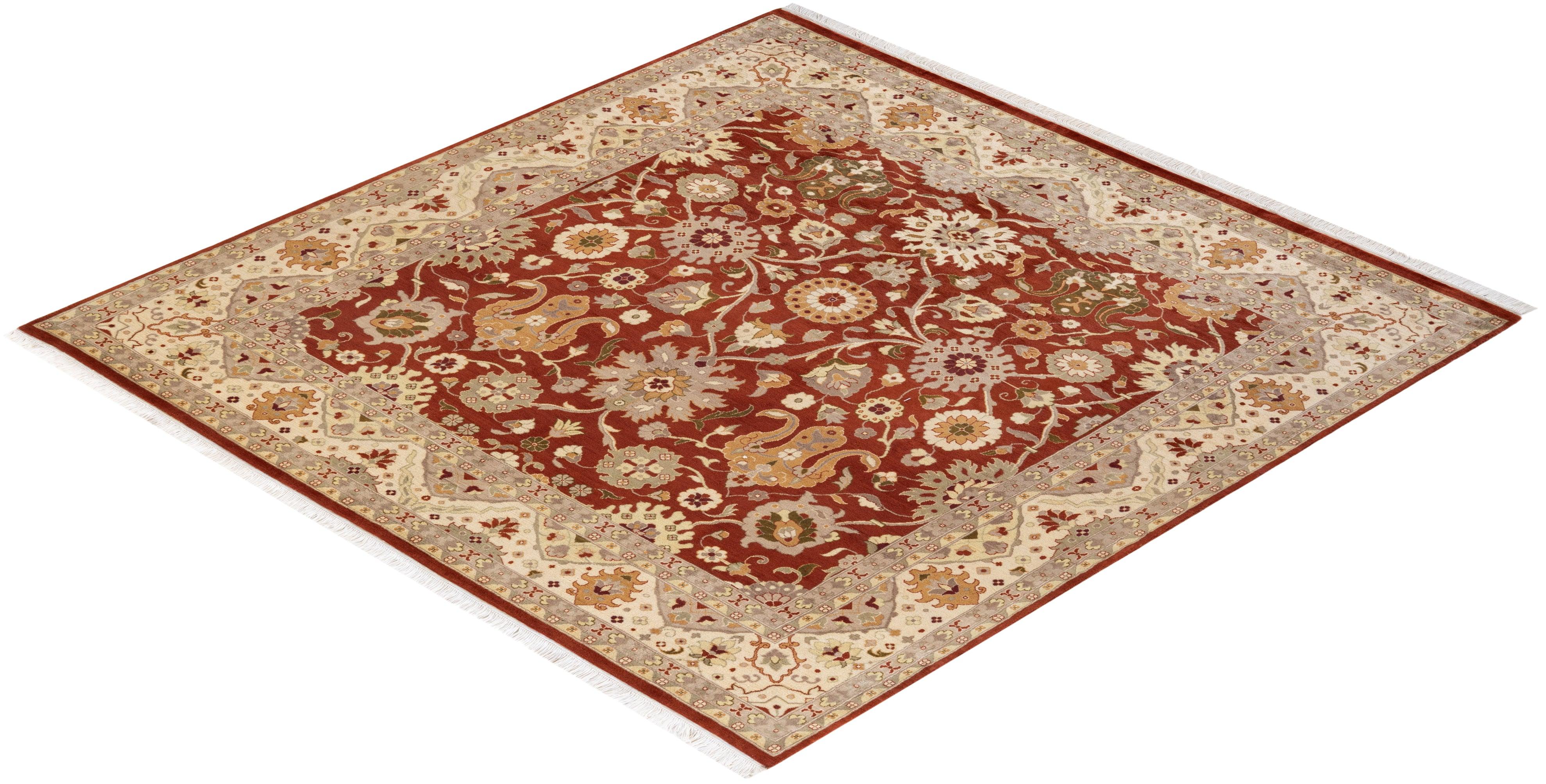 Traditional Hand Knotted Mogul Oriental Orange Square Area Rug 6' 2" x 6' 3"