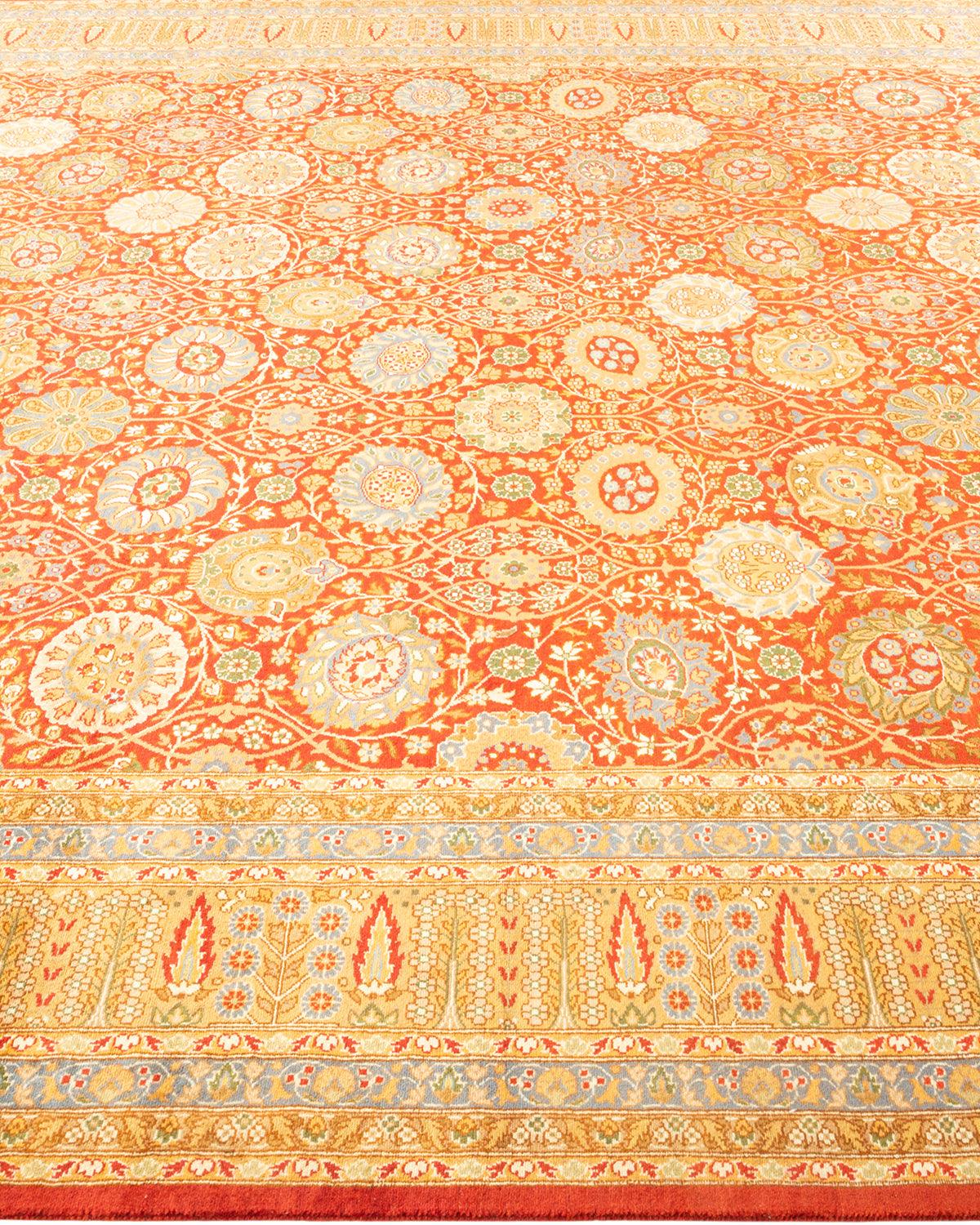 Traditional Hand Knotted Mogul Floral Orange Area Rug 8' 1" x 10' 0"