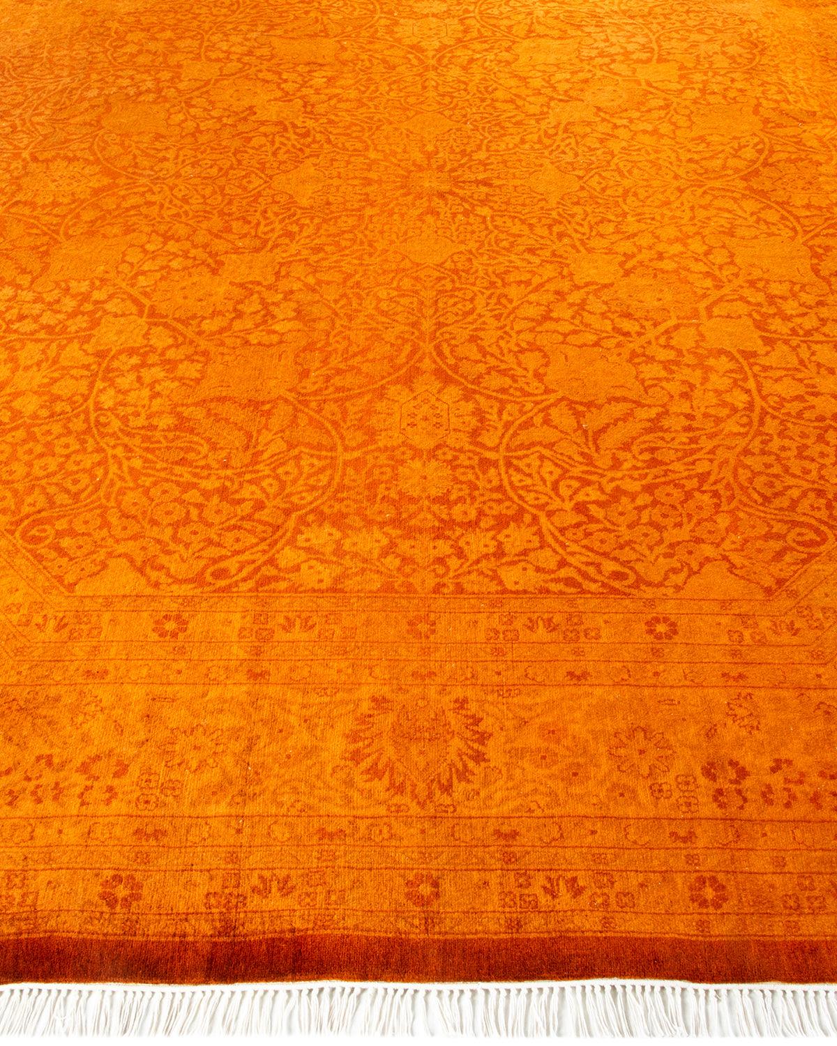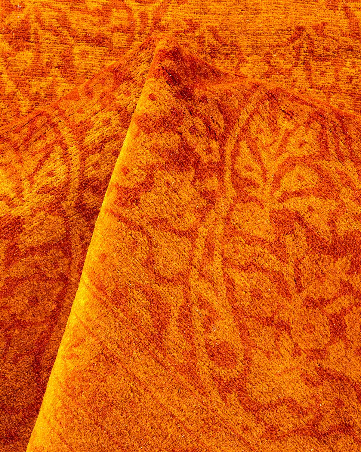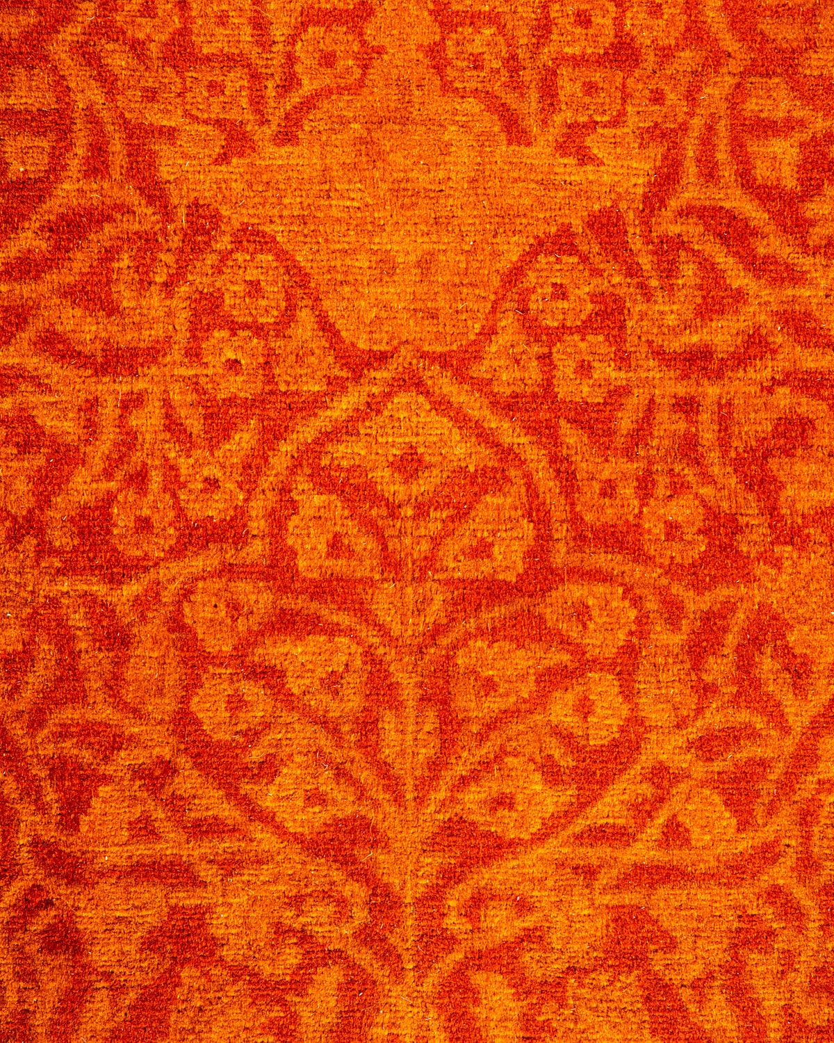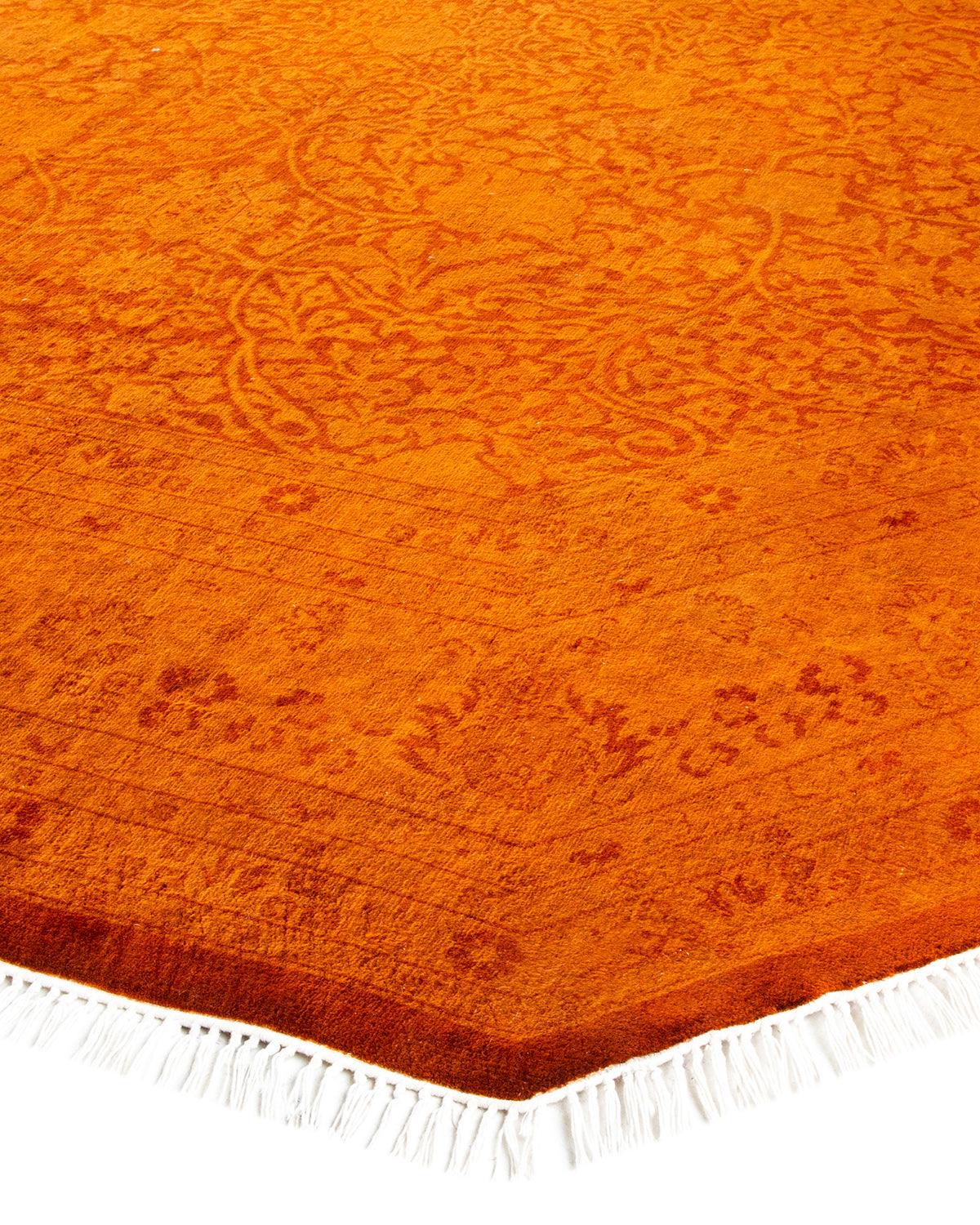 Contemporary Hand Knotted Overdyed Orange Octagon Area rug 8' 1" x 8' 1"