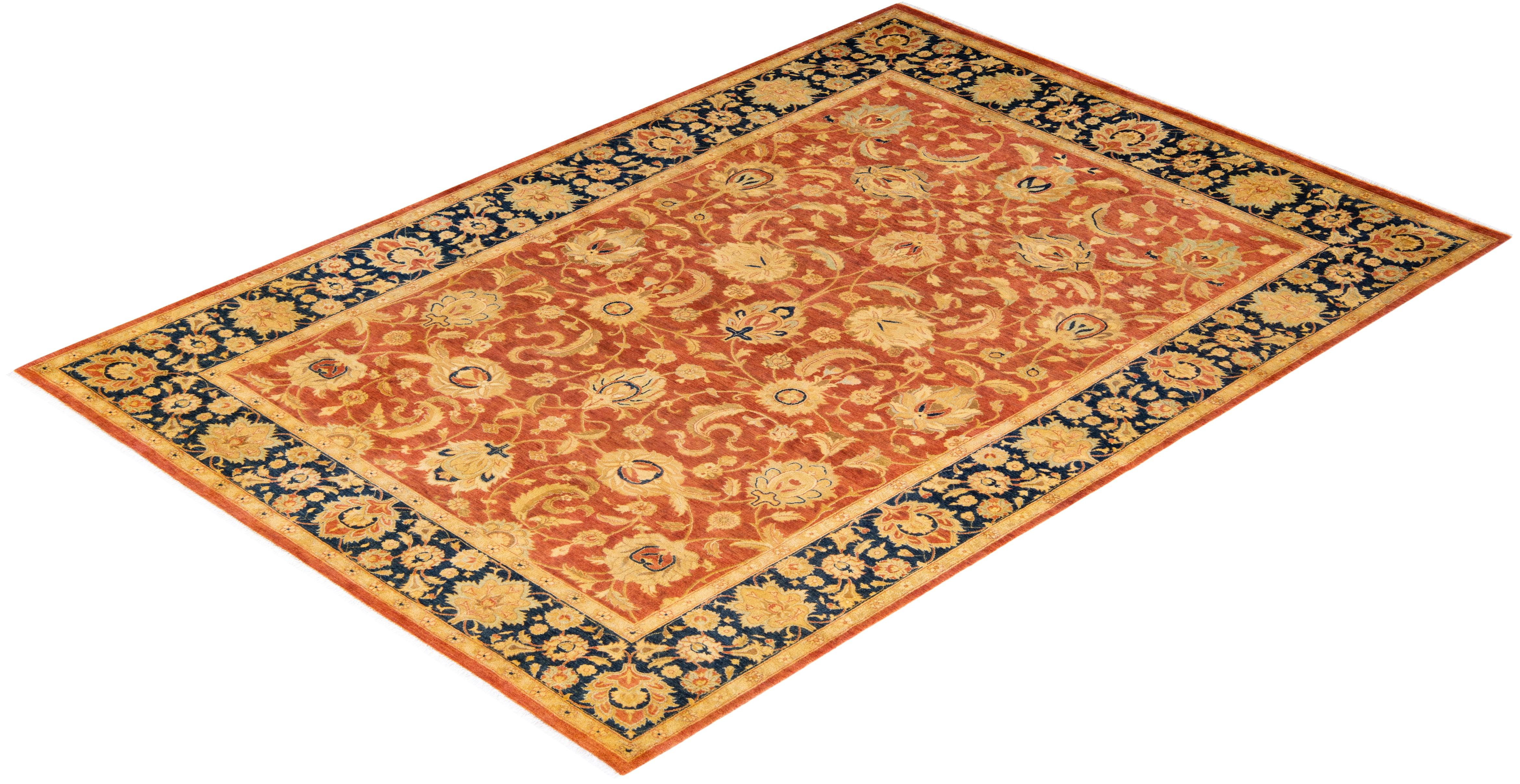 Traditional Hand Knotted Mogul Oriental Orange Area Rug 6' 1" x 8' 9"