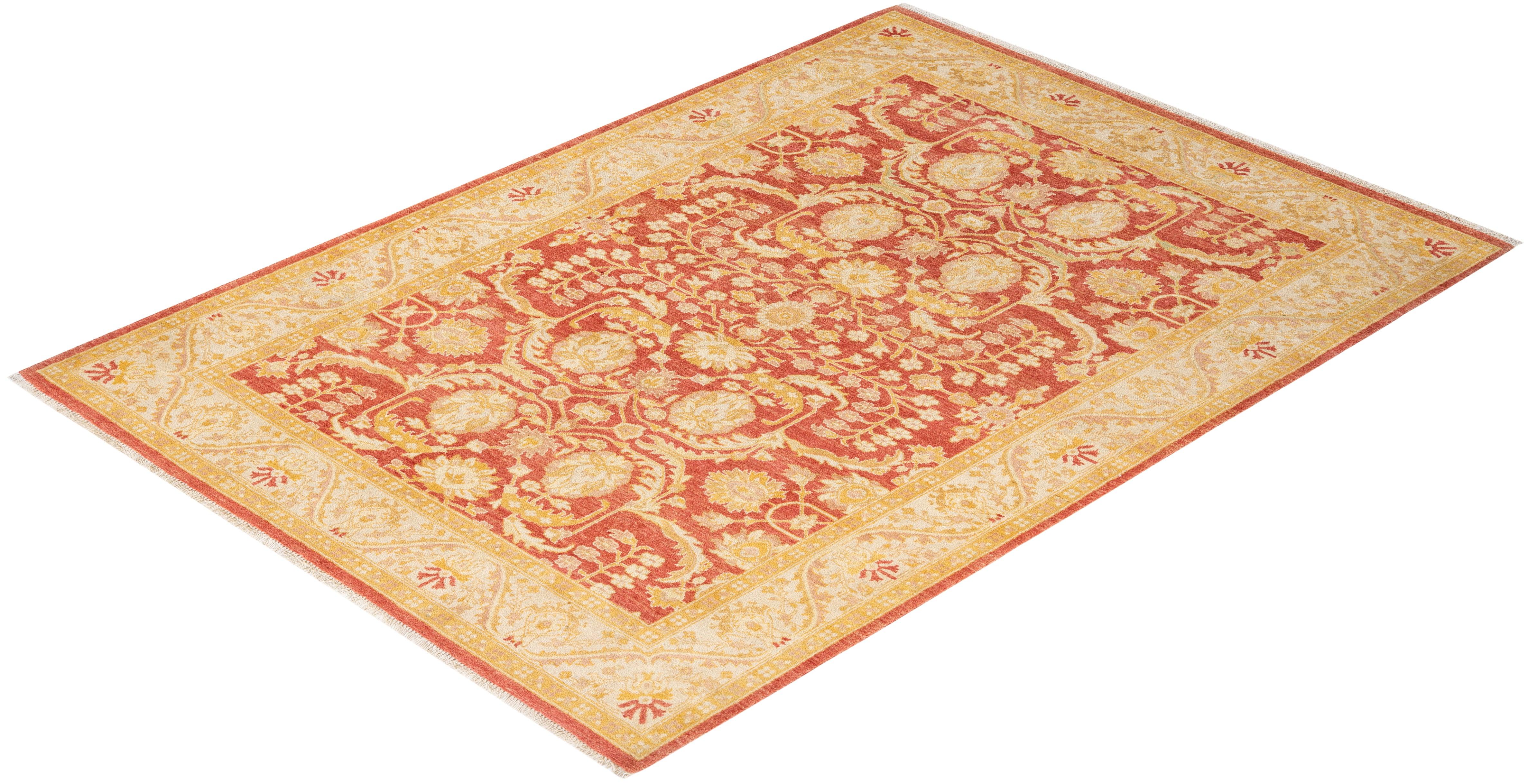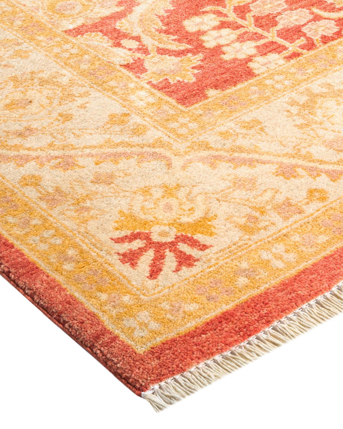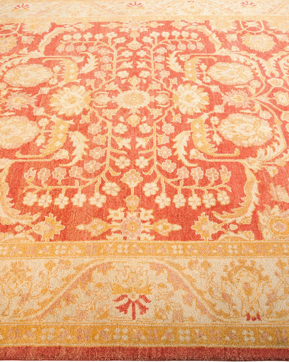 Contemporary Hand Knotted Eclectic Oriental Orange Area Rug 6' 1" x 8' 10"