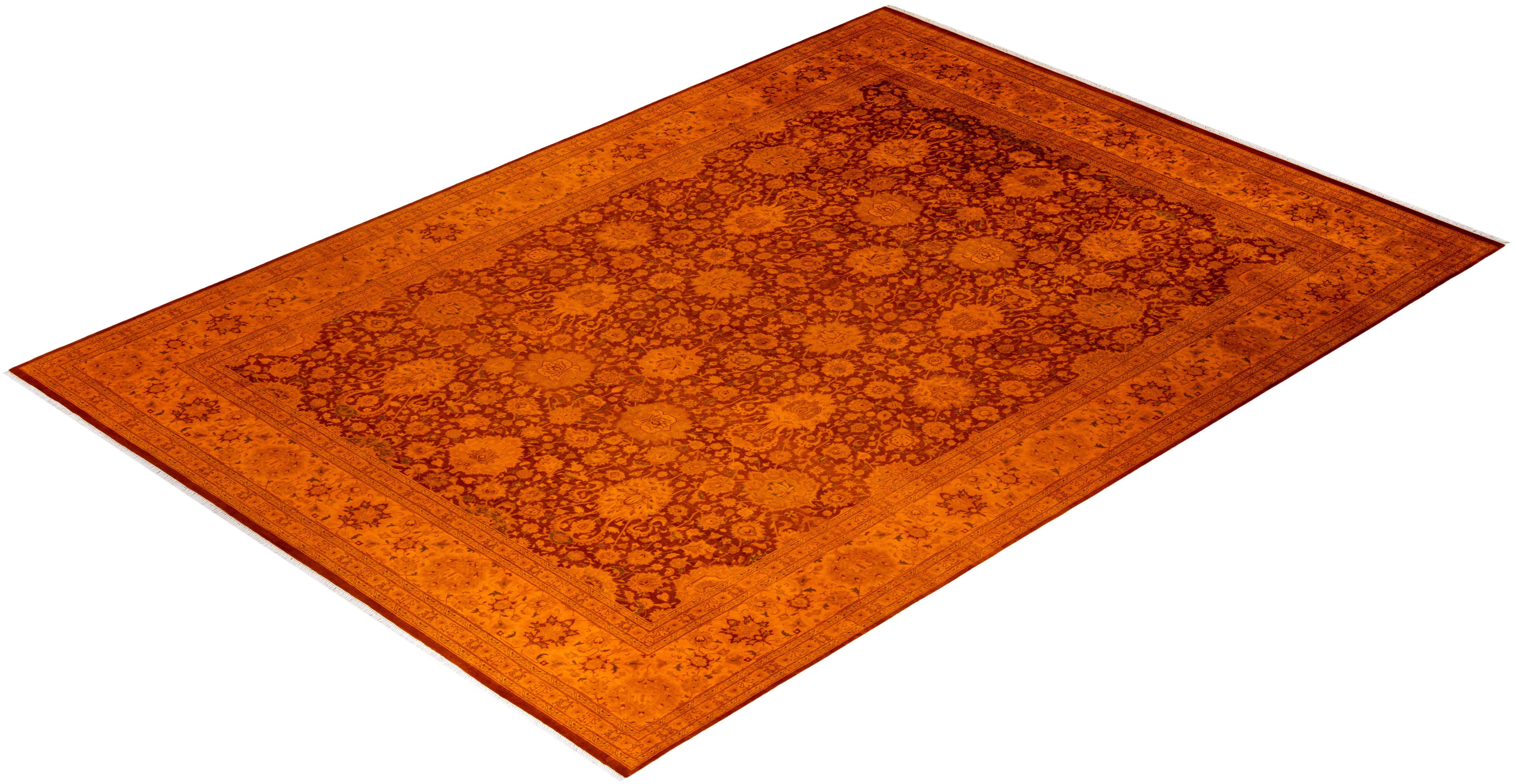 Contemporary Hand Knotted Overdyed Orange Area Rug 8' 10" x 12' 4"