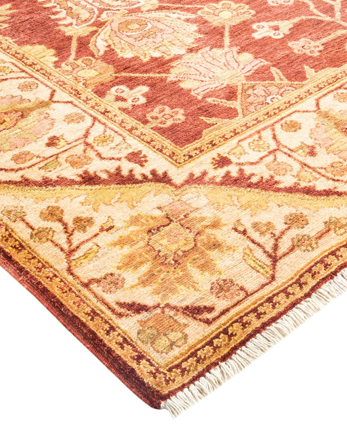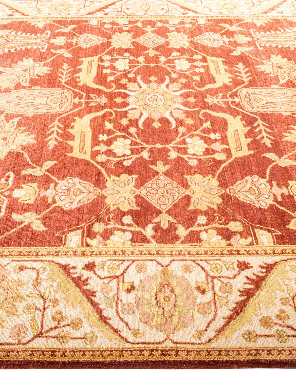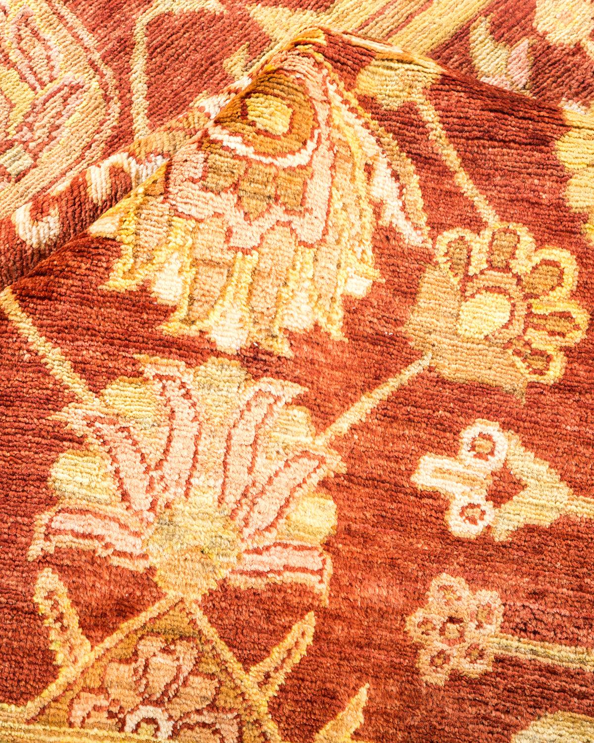 Contemporary Hand Knotted Eclectic Oriental Orange Area Rug 6' 2" x 8' 10"