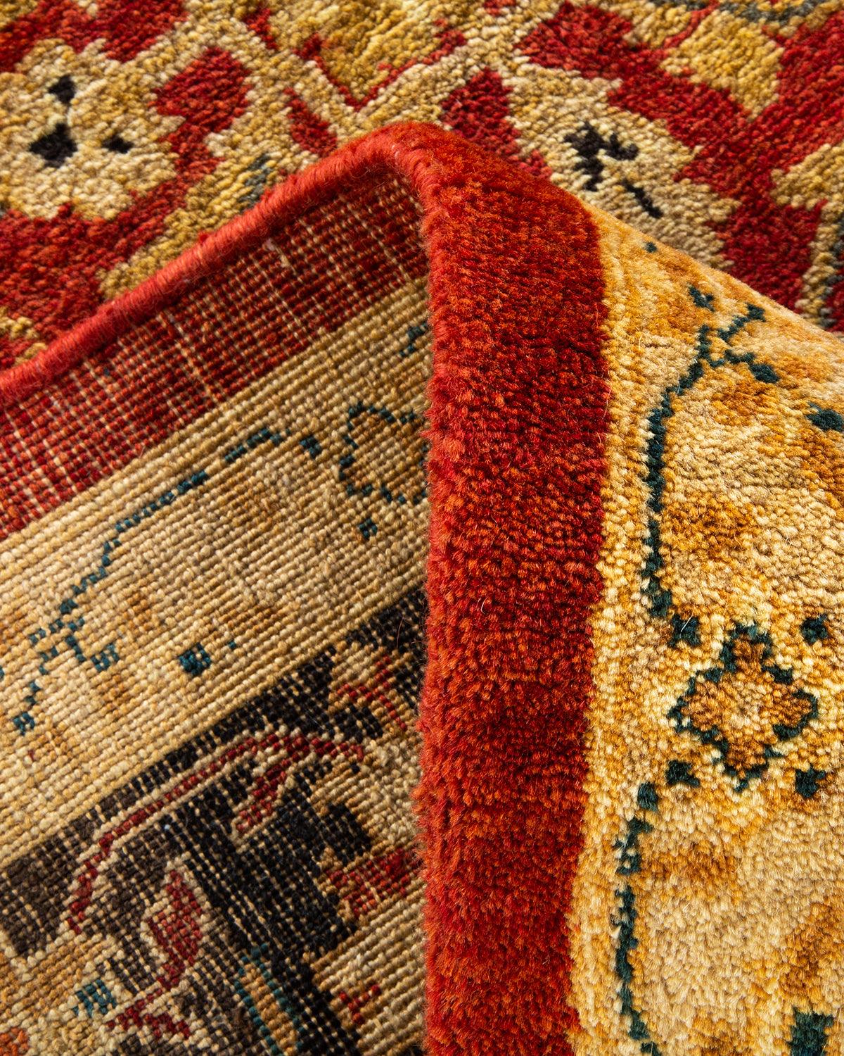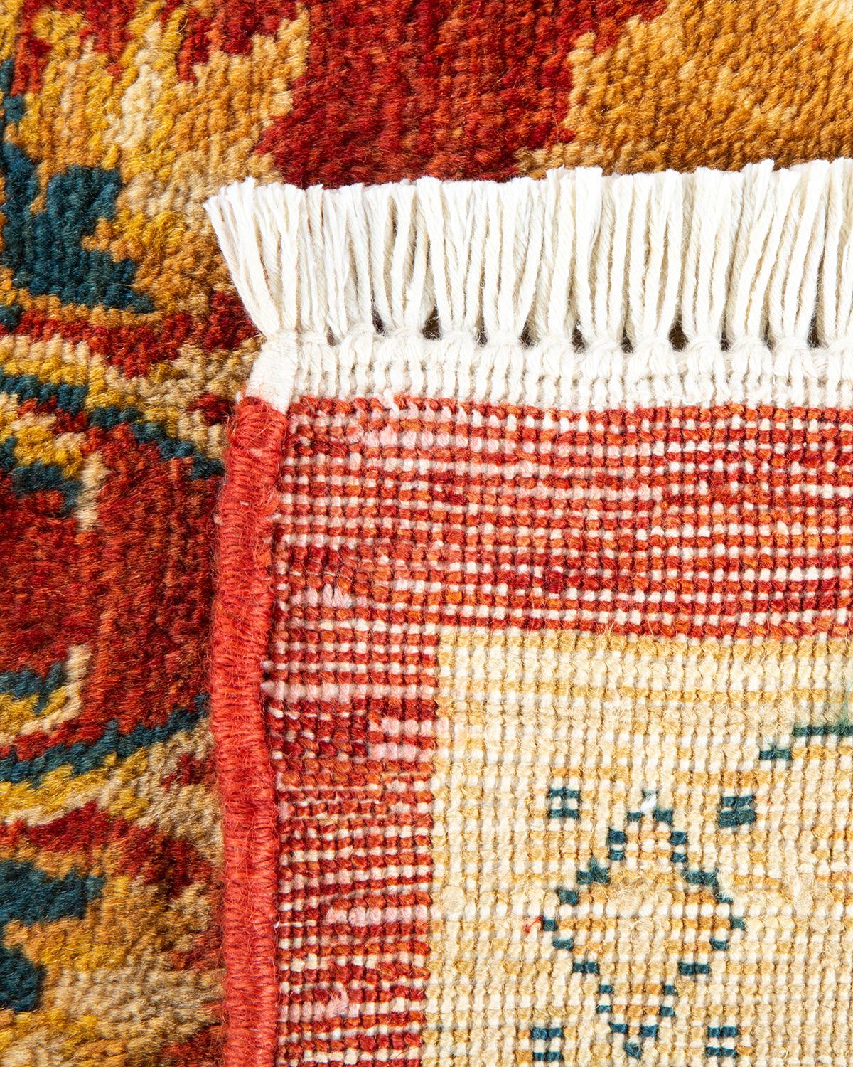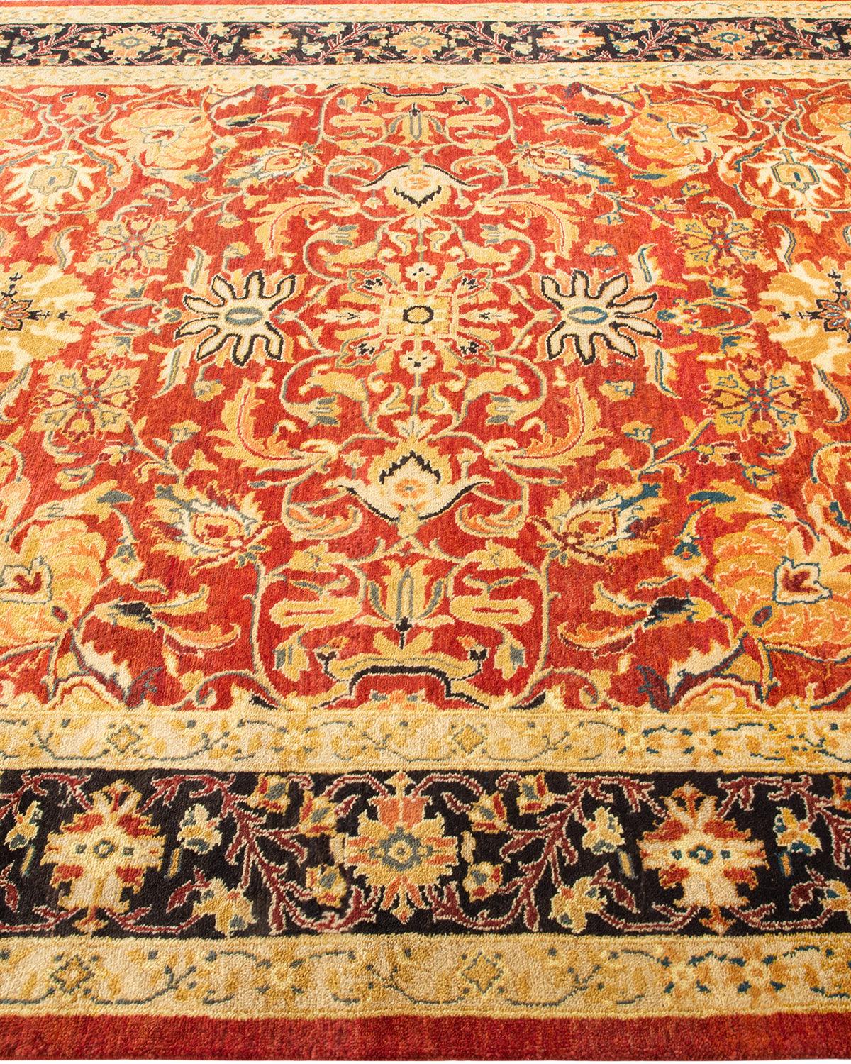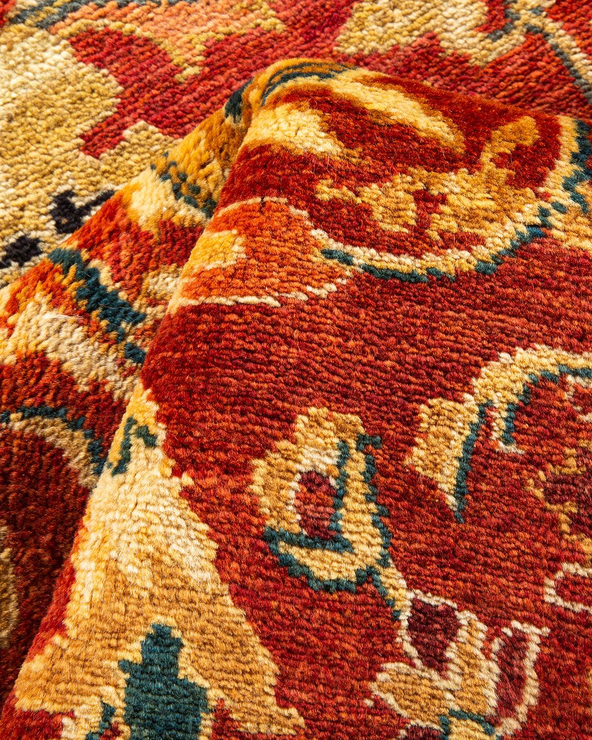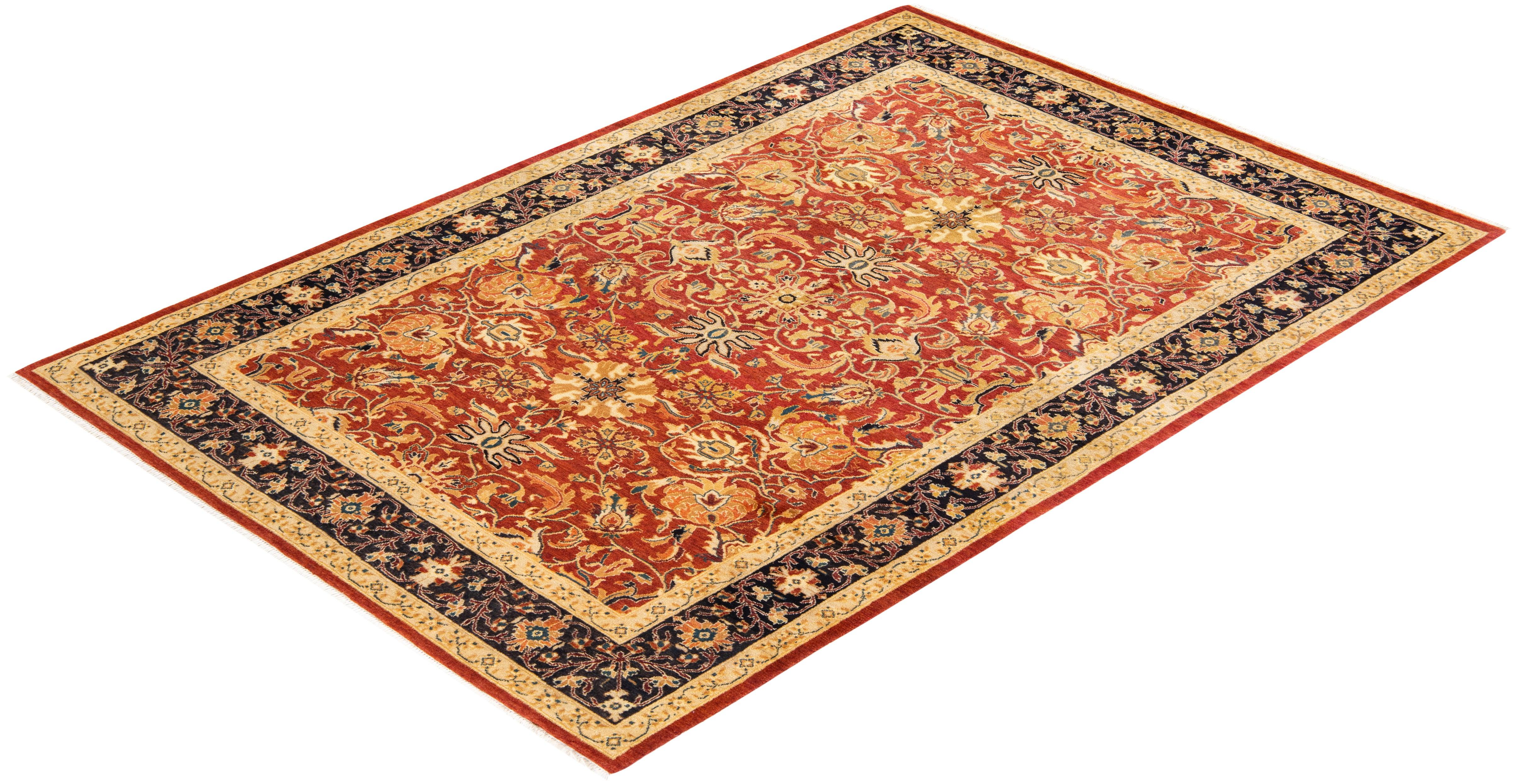 Contemporary Hand Knotted Eclectic Floral Orange Area Rug 6' 1" x 9' 1"