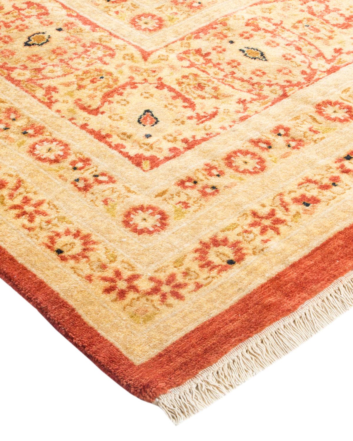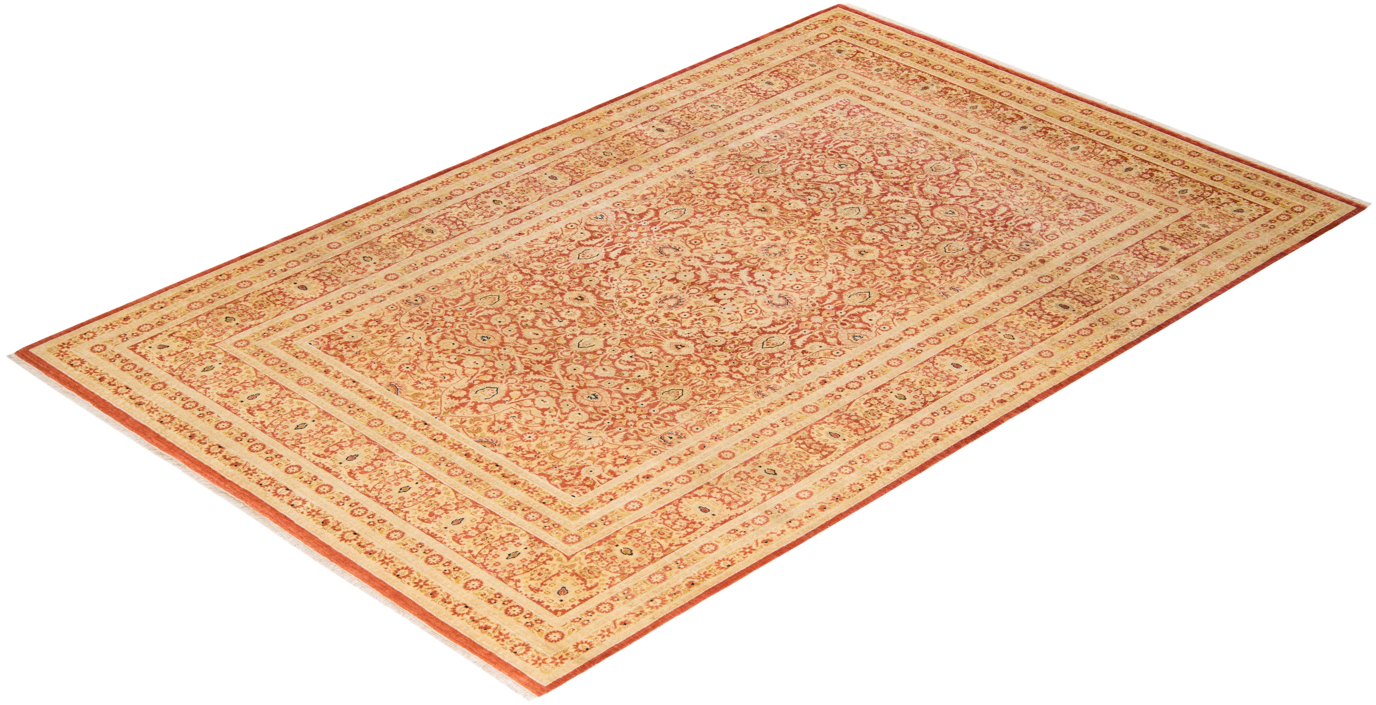 Traditional Hand Knotted Mogul Floral Orange Area Rug 6' 1" x 9' 5"