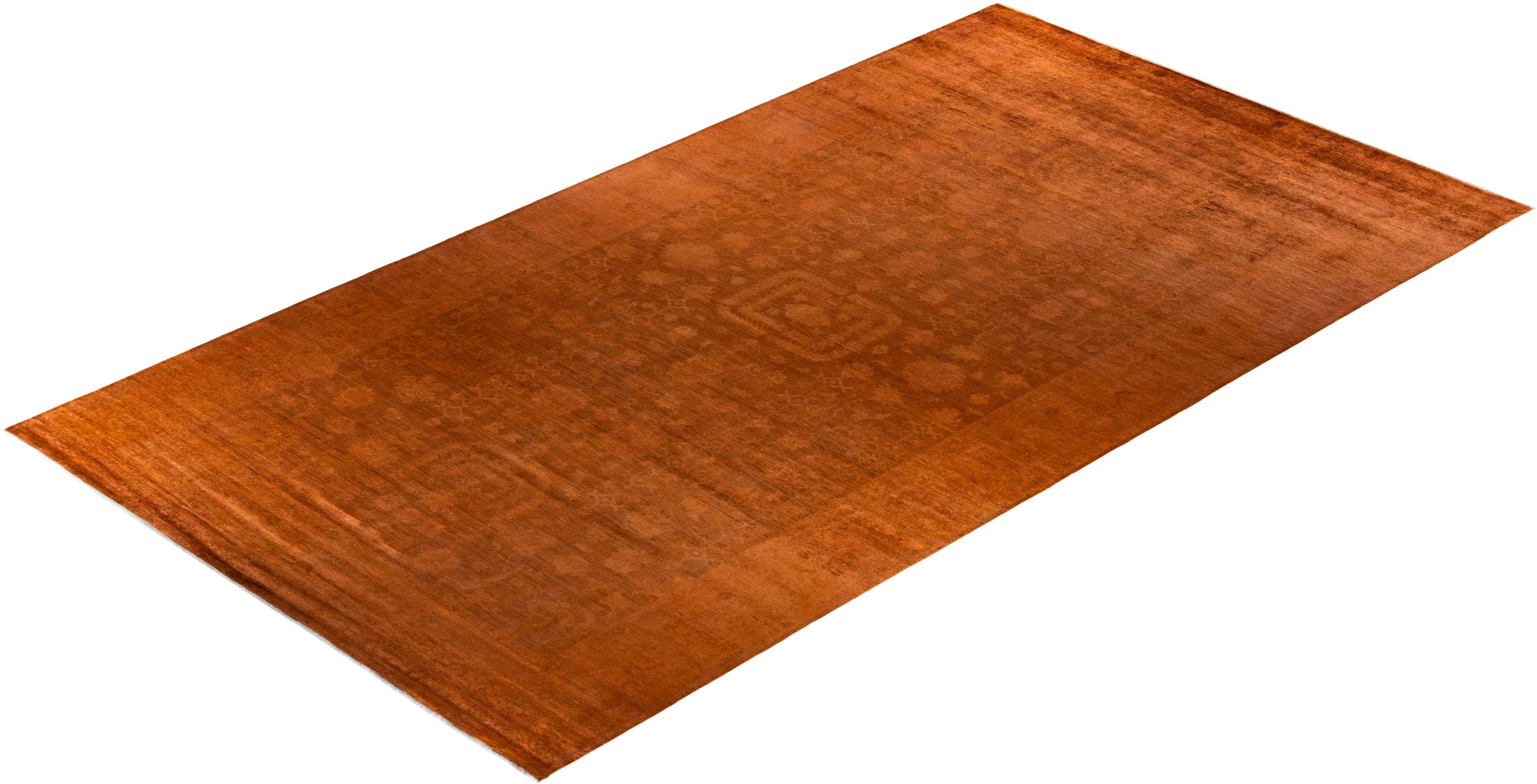 Contemporary Hand-Knotted Orange Area Rug 9' 1" x 16' 9"