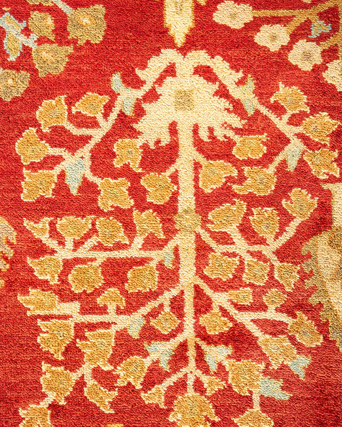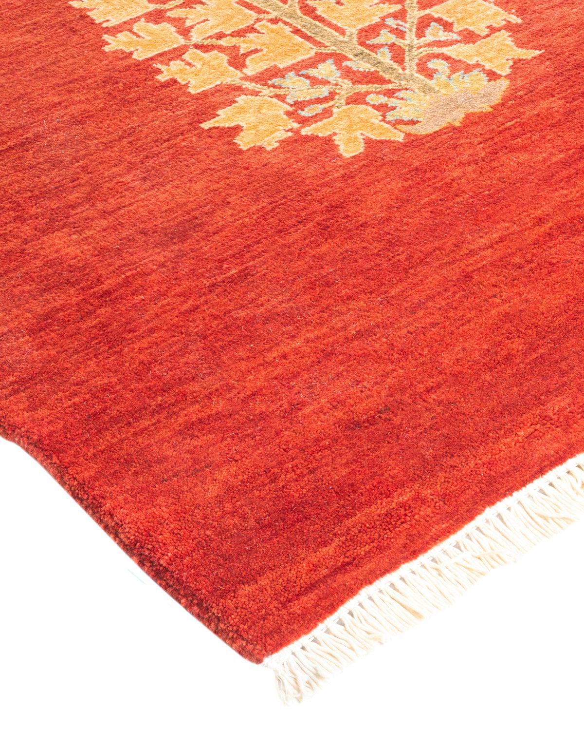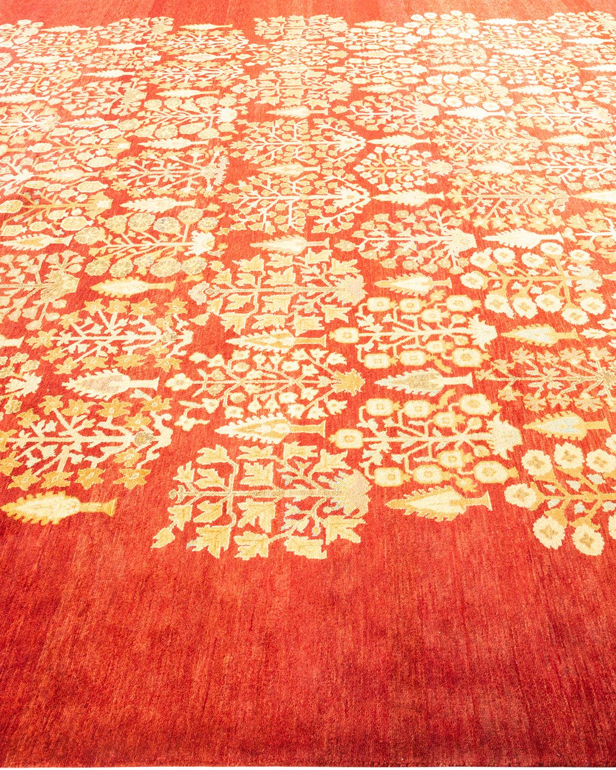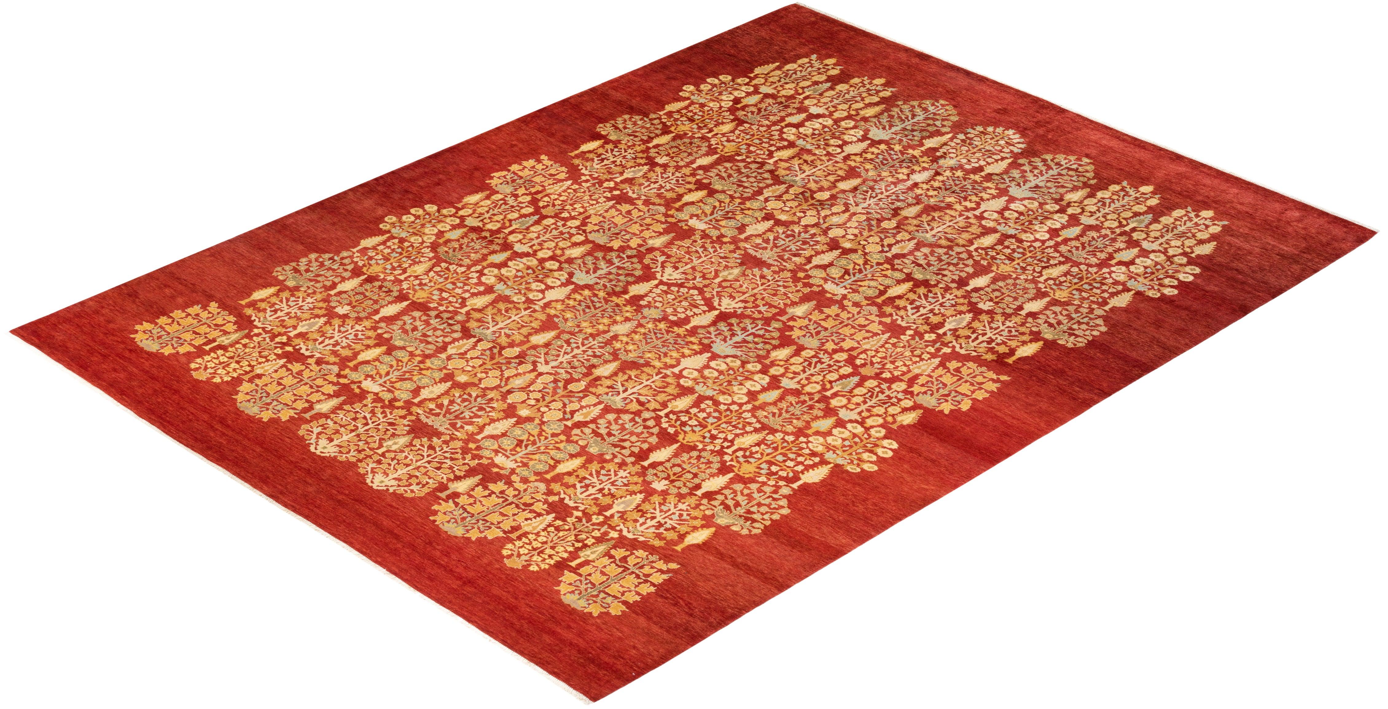 Contemporary Hand Knotted Eclectic Floral Orange Area Rug 10' 0" x 13' 6"