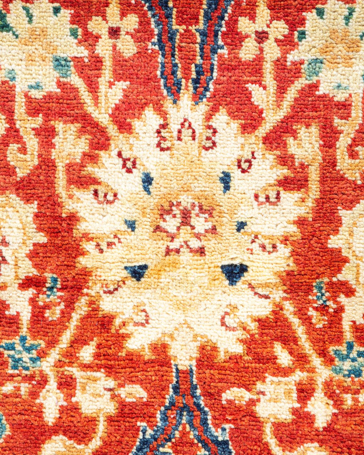 Contemporary Hand Knotted Eclectic Floral Orange Area Rug 4' 0" x 6' 1"