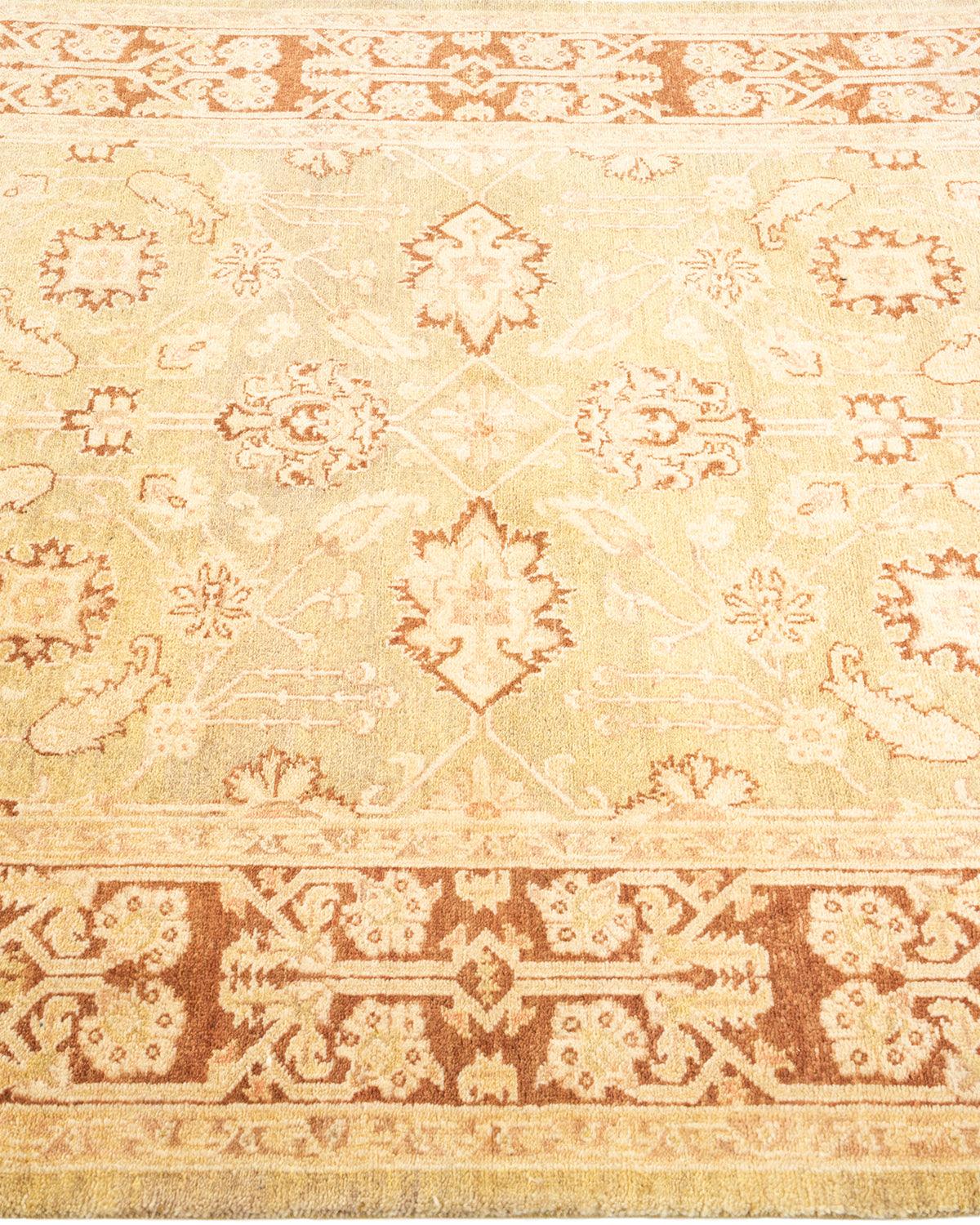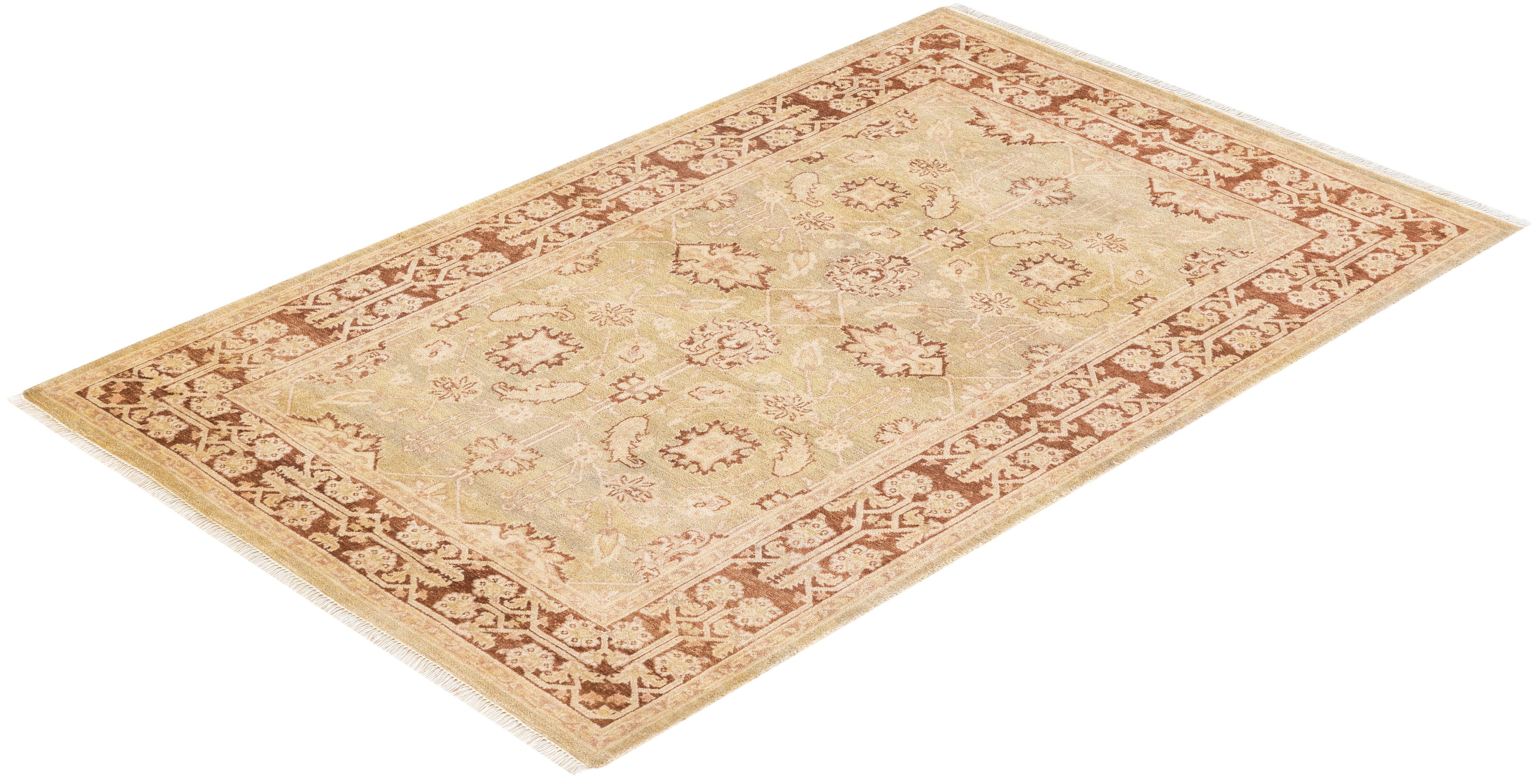 Contemporary Hand Knotted Eclectic Floral Orange Area Rug 4' 1" x 6' 4"