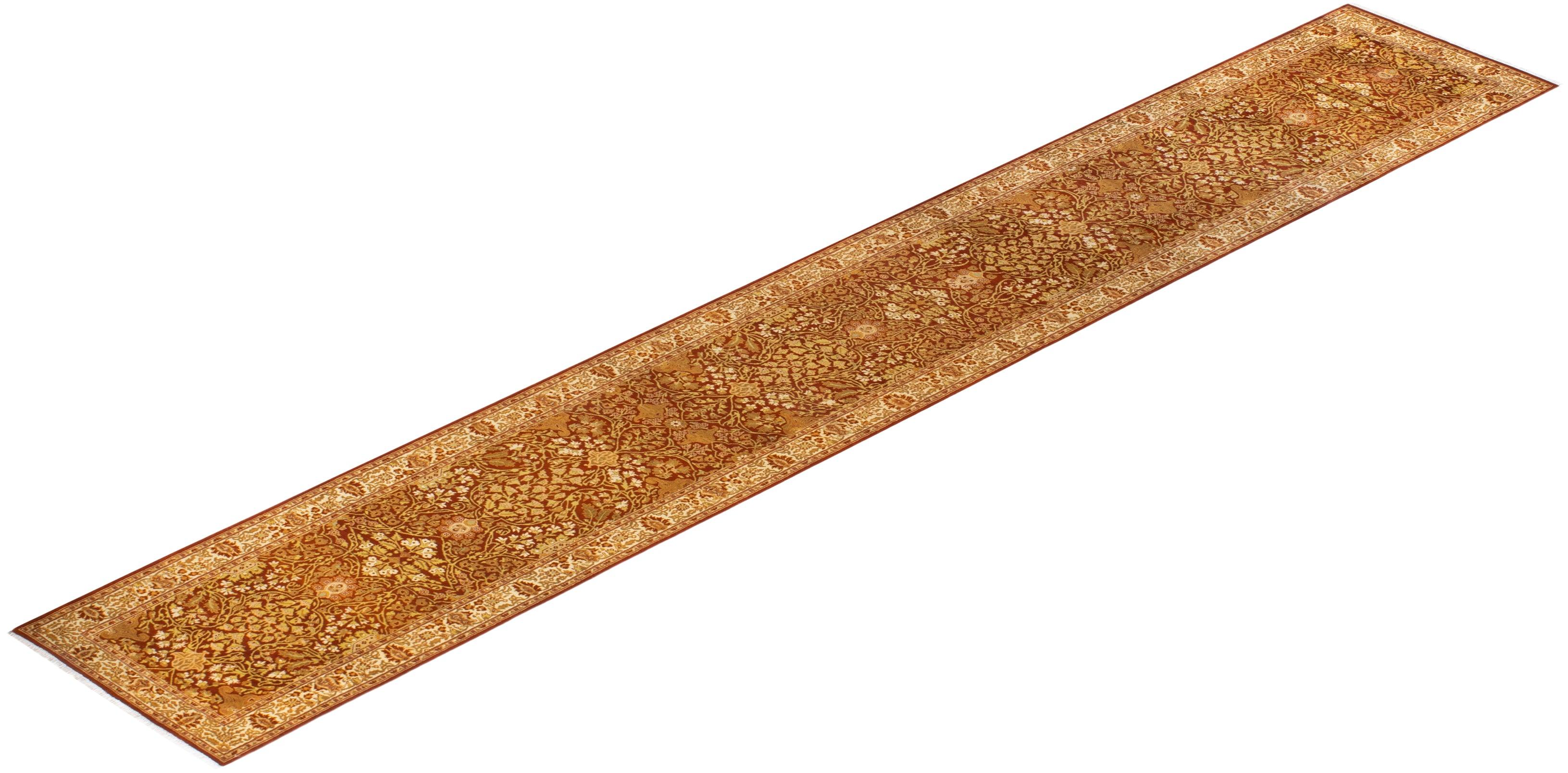 Traditional Hand Knotted Mogul Oriental Orange Runner 2' 8" x 17' 10"