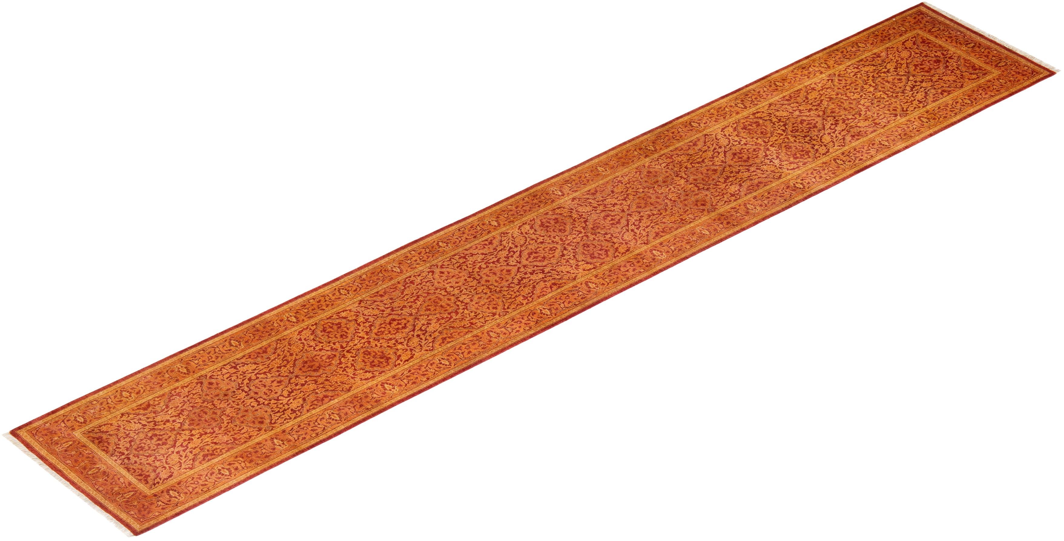 Traditional Hand Knotted Mogul Oriental Orange Runner 2' 5" x 13' 2"