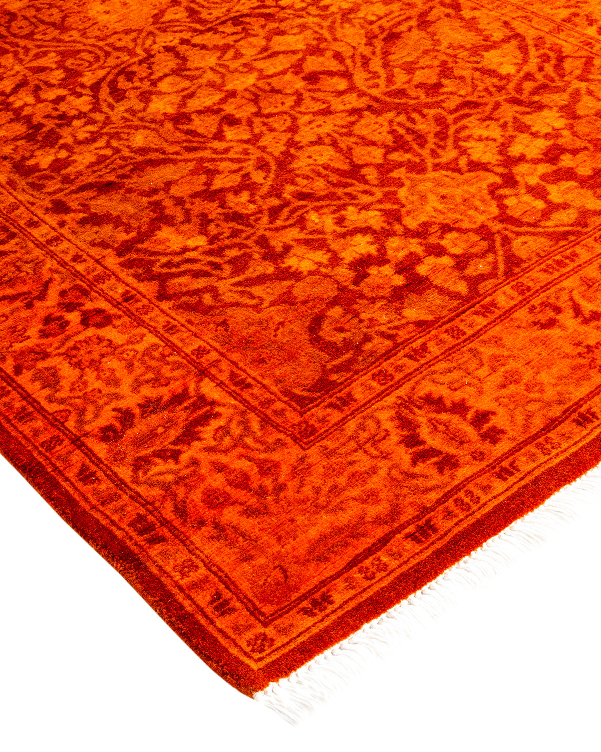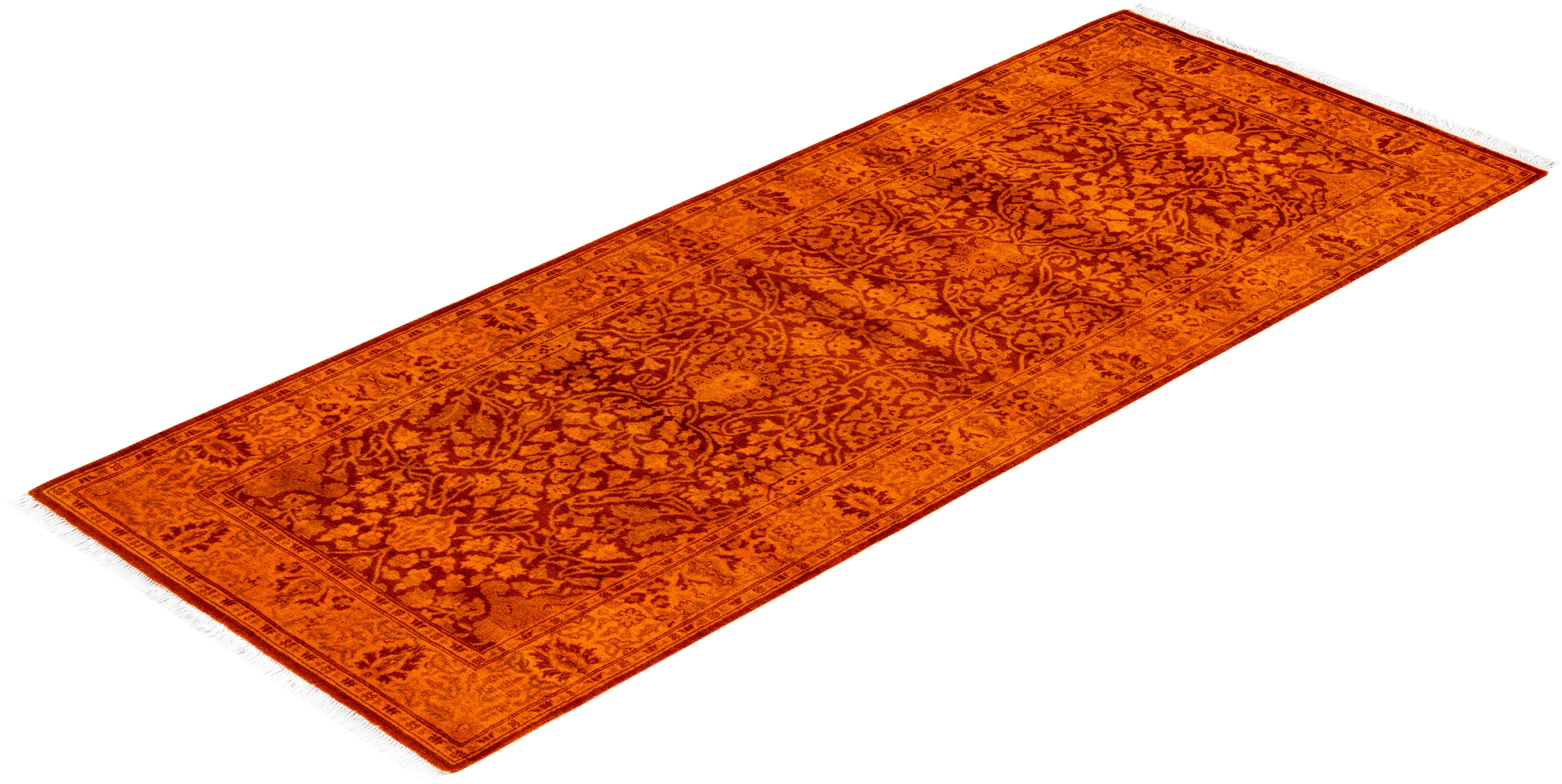 Contemporary Hand-Knotted Overdyed Orange Runner 2' 6" x 6' 5"