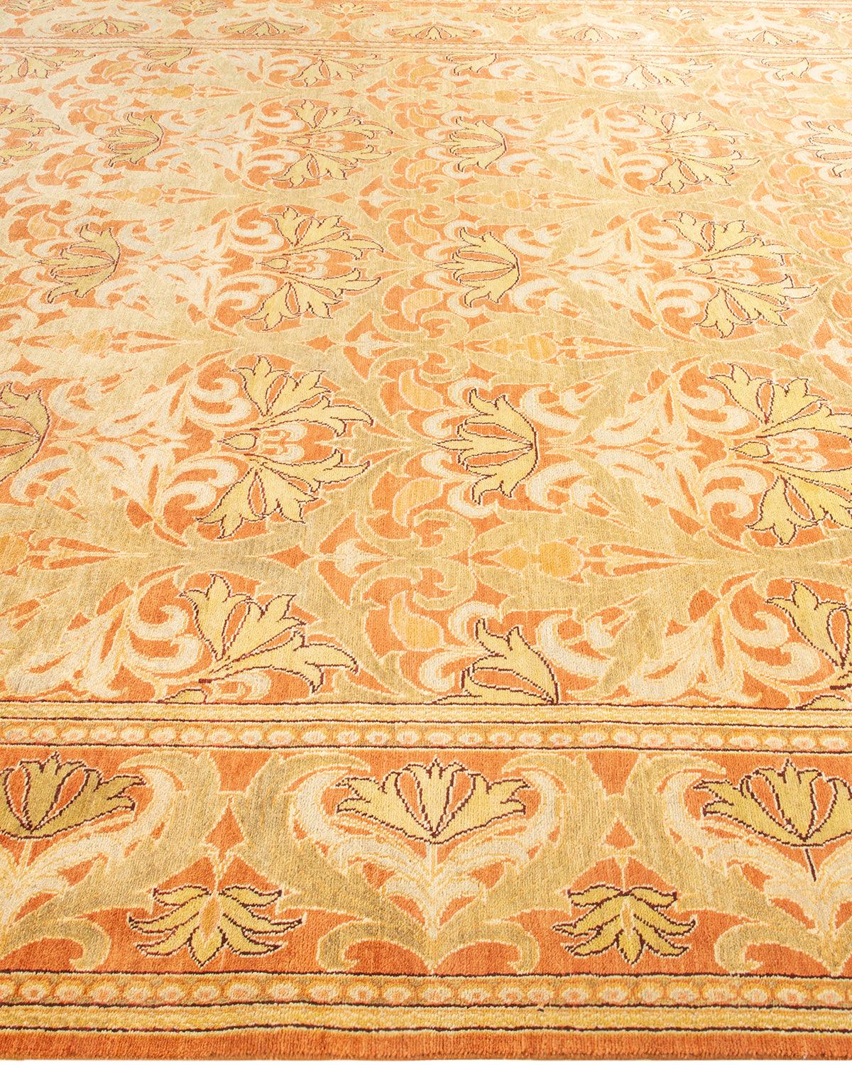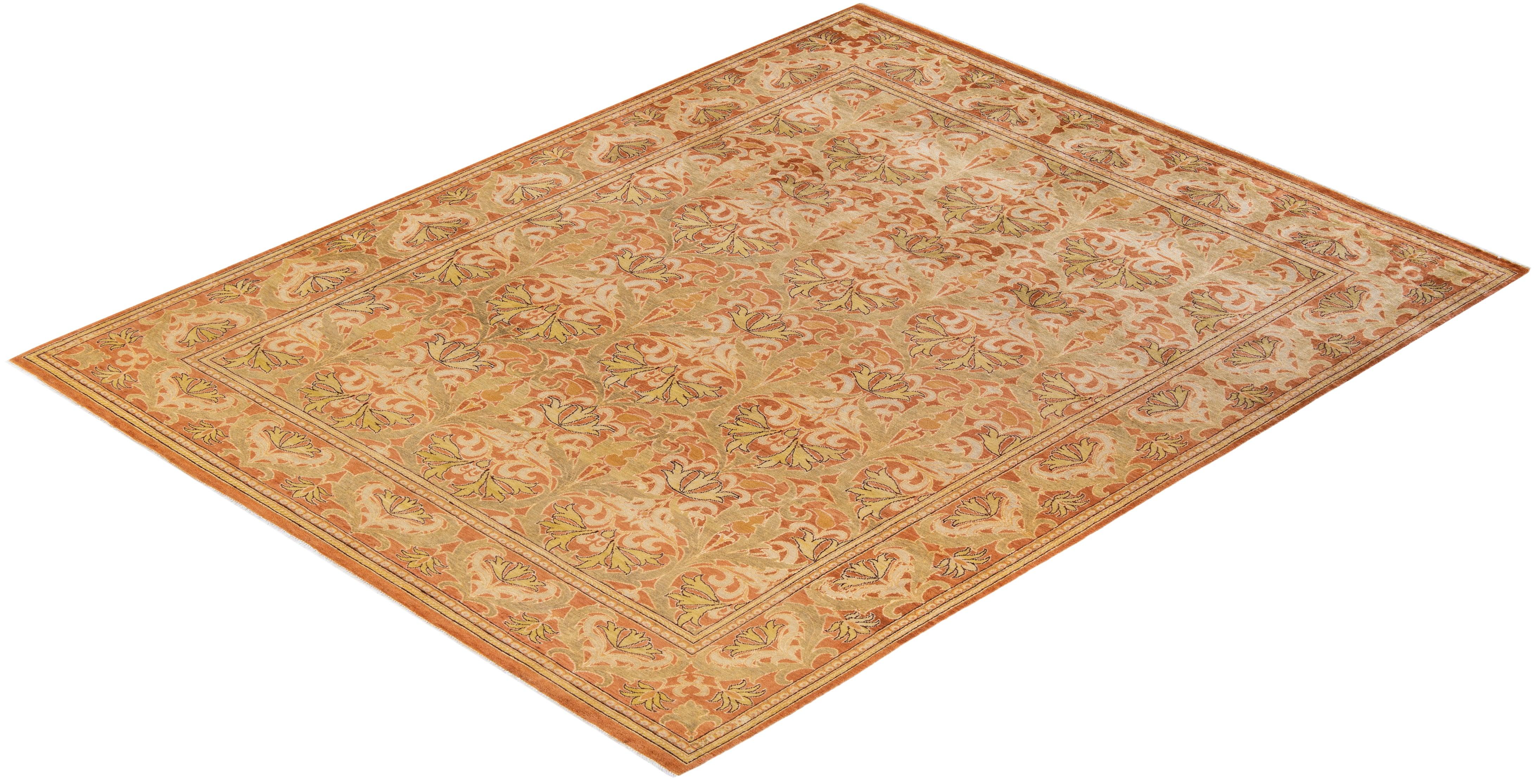 Contemporary Hand Knotted Eclectic Oriental Orange Area Rug 8' 1" x 10' 4"