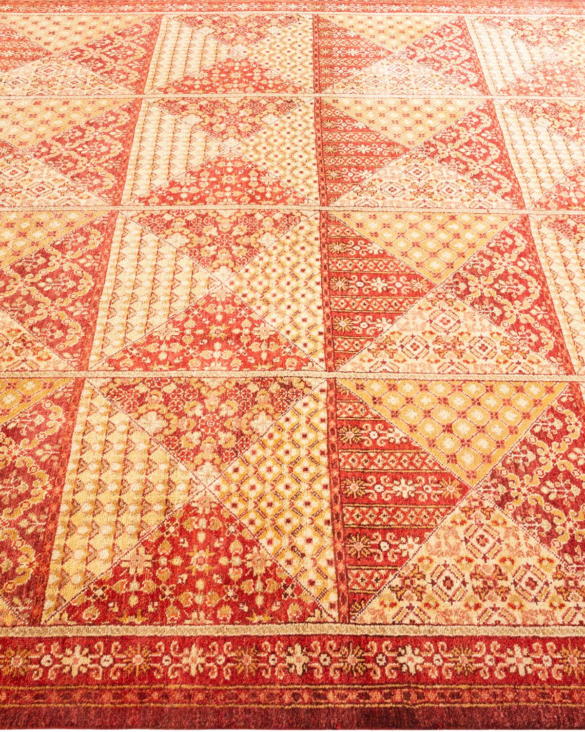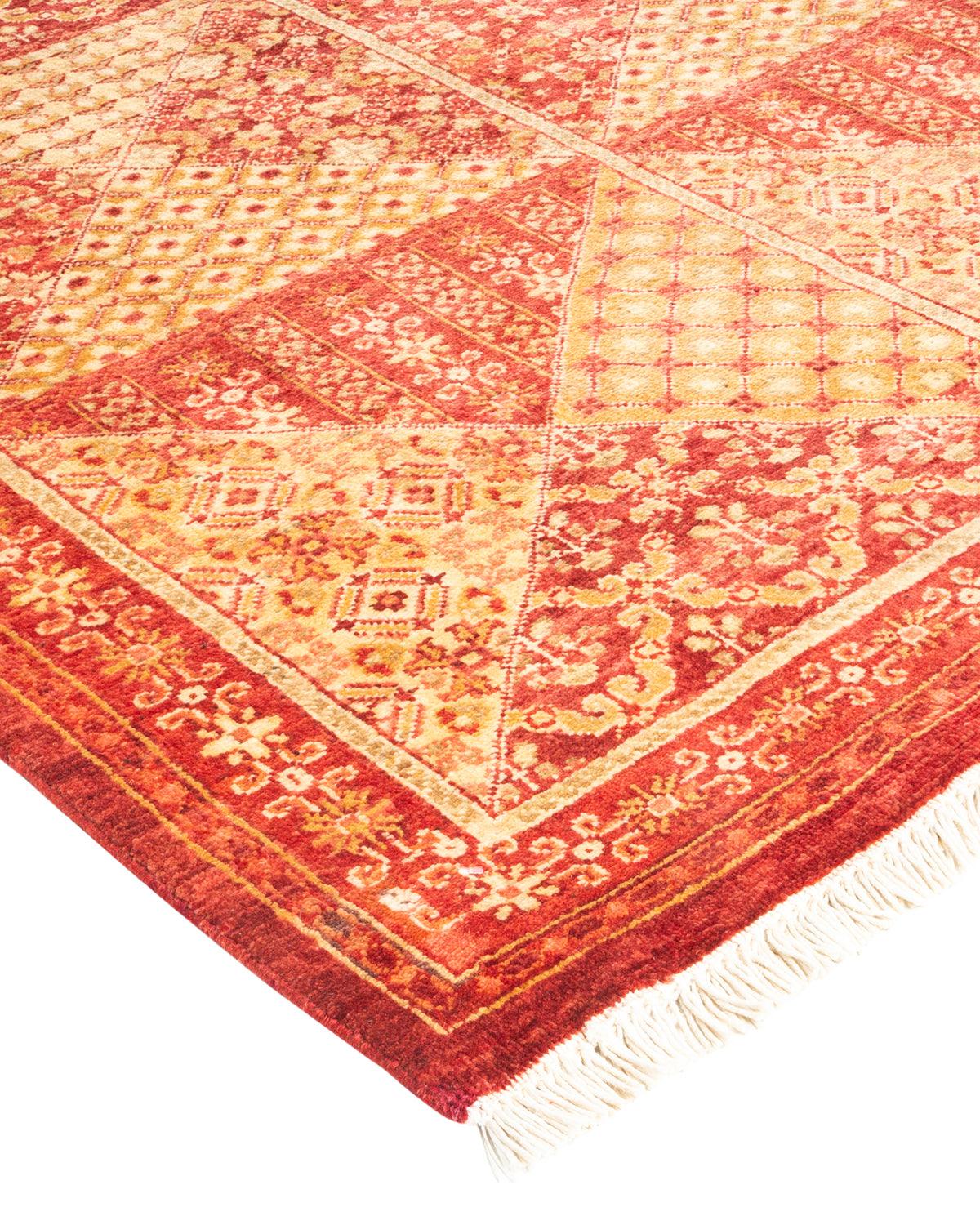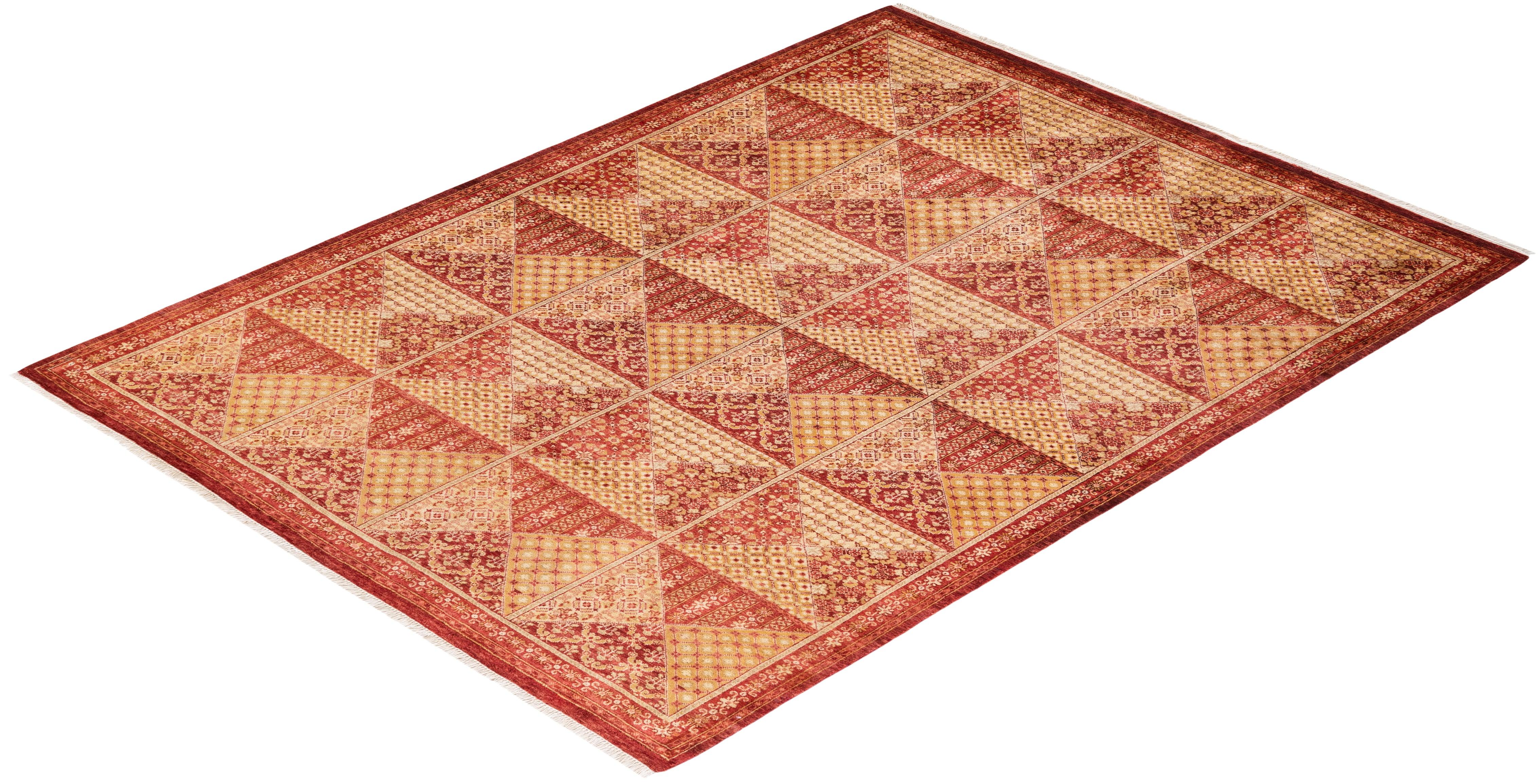 Contemporary Hand Knotted Eclectic Oriental Orange Area Rug 6' 2" x 8' 4"