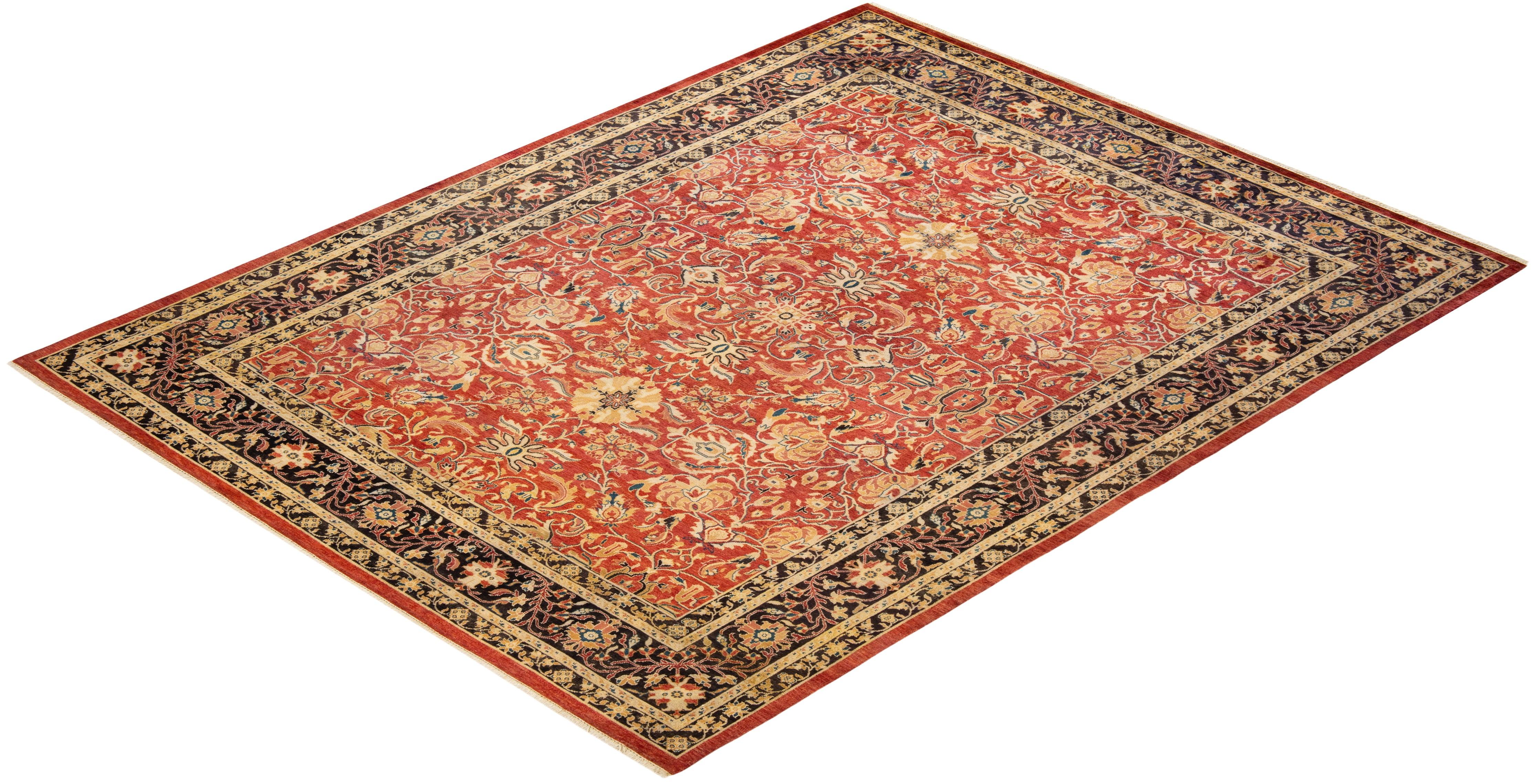 Contemporary Hand Knotted Eclectic Orange Area Rug 7' 10" x 10' 2"