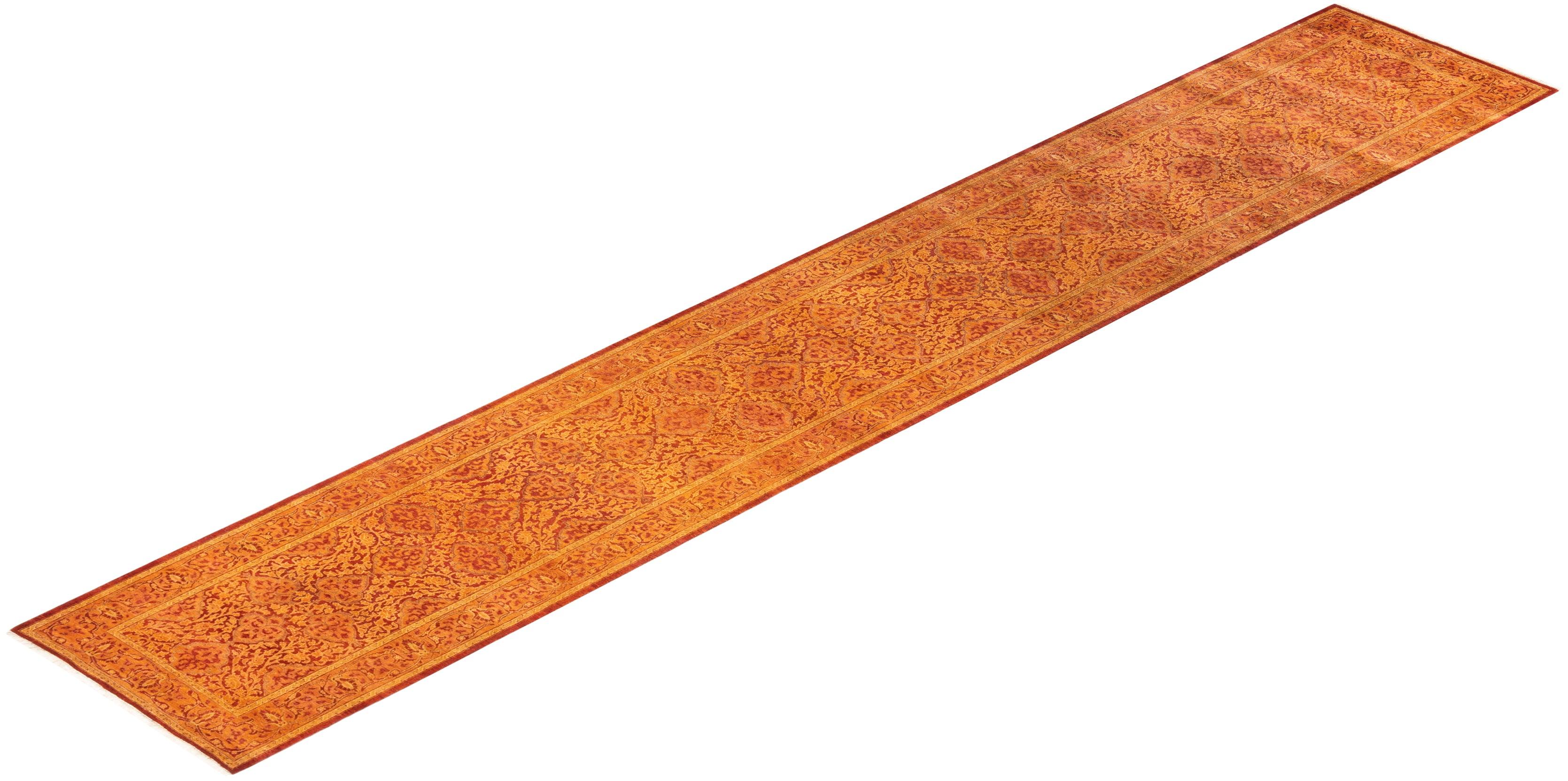 Traditional Hand Knotted Mogul Oriental Orange Runner 2' 6" x 15' 10"