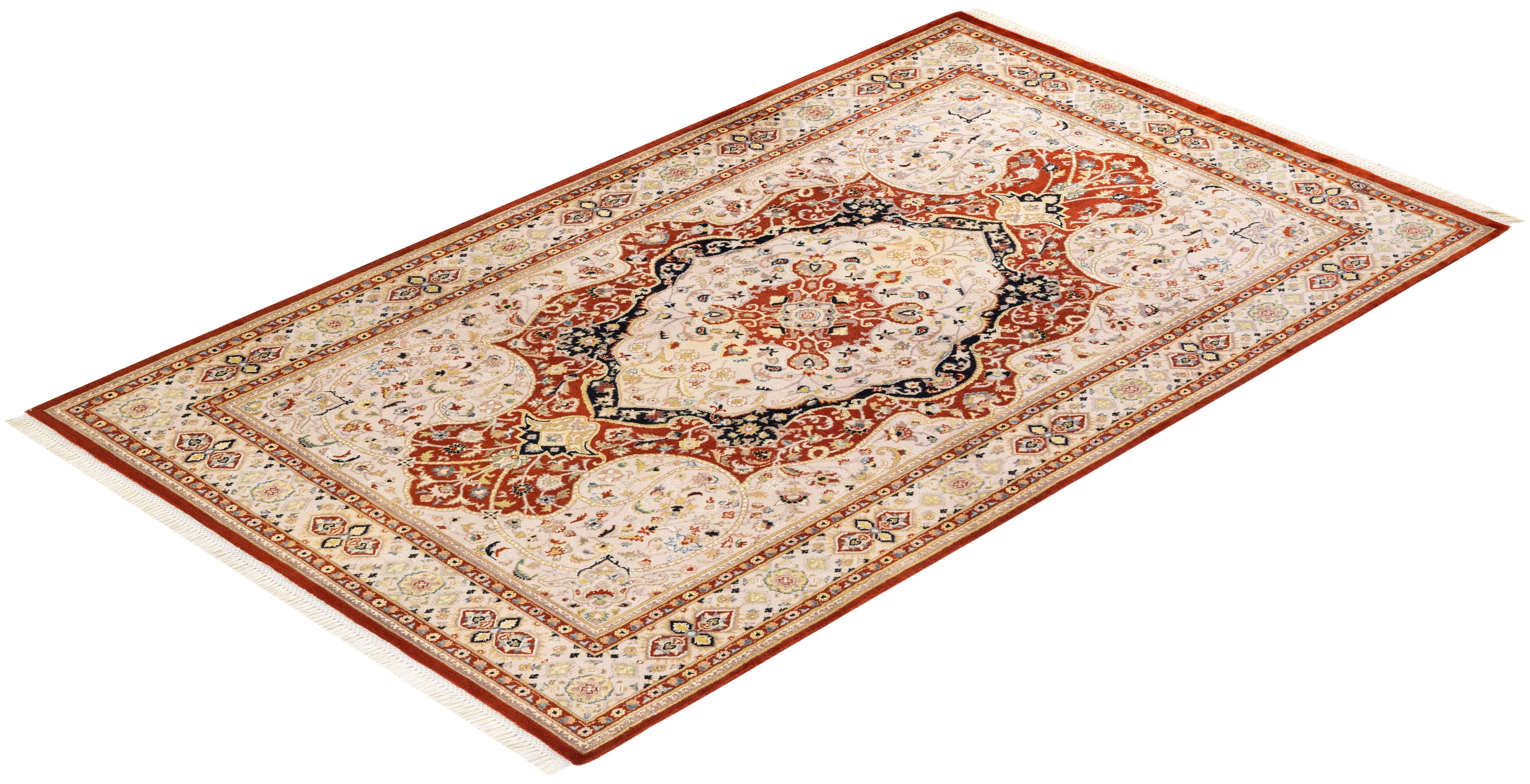 Traditional Hand Knotted Mogul Oriental Orange Area Rug 4' 7" x 7' 7"