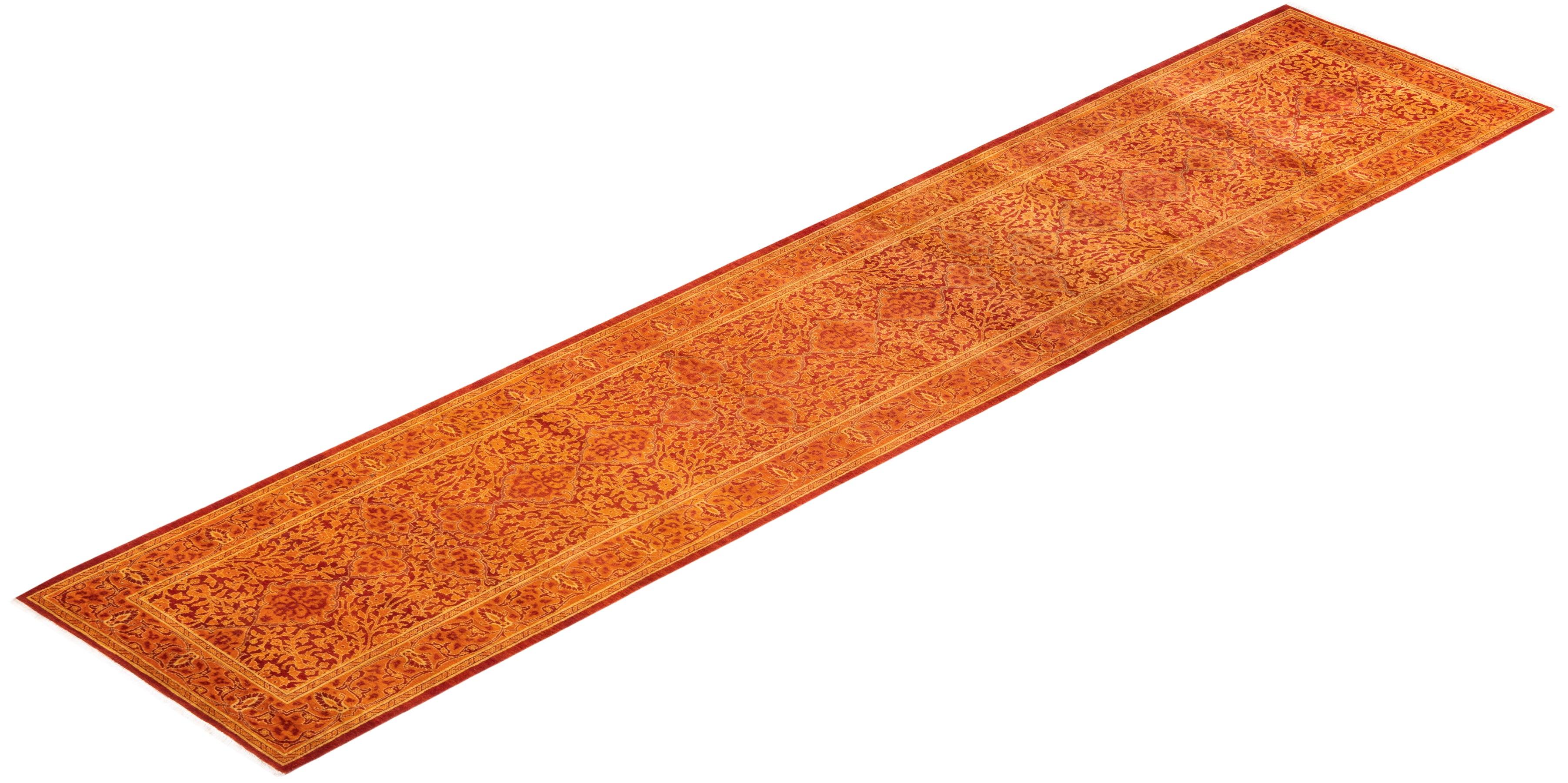 Traditional Hand Knotted Mogul Oriental Orange Runner 2' 9" x 13' 4"